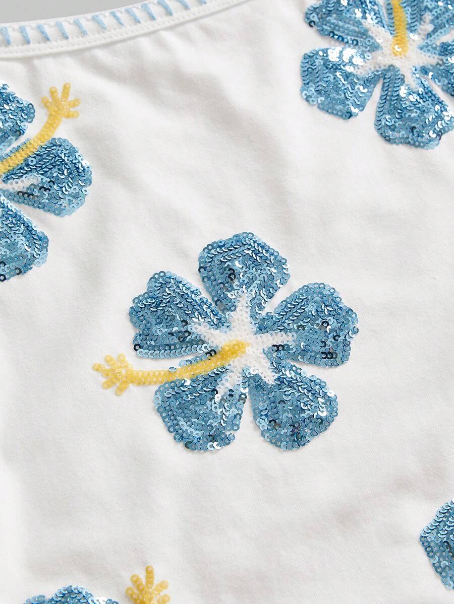 Insel Babe glänzende Hibiskus Pailletten bestickte anliegende Damen Trägershirt