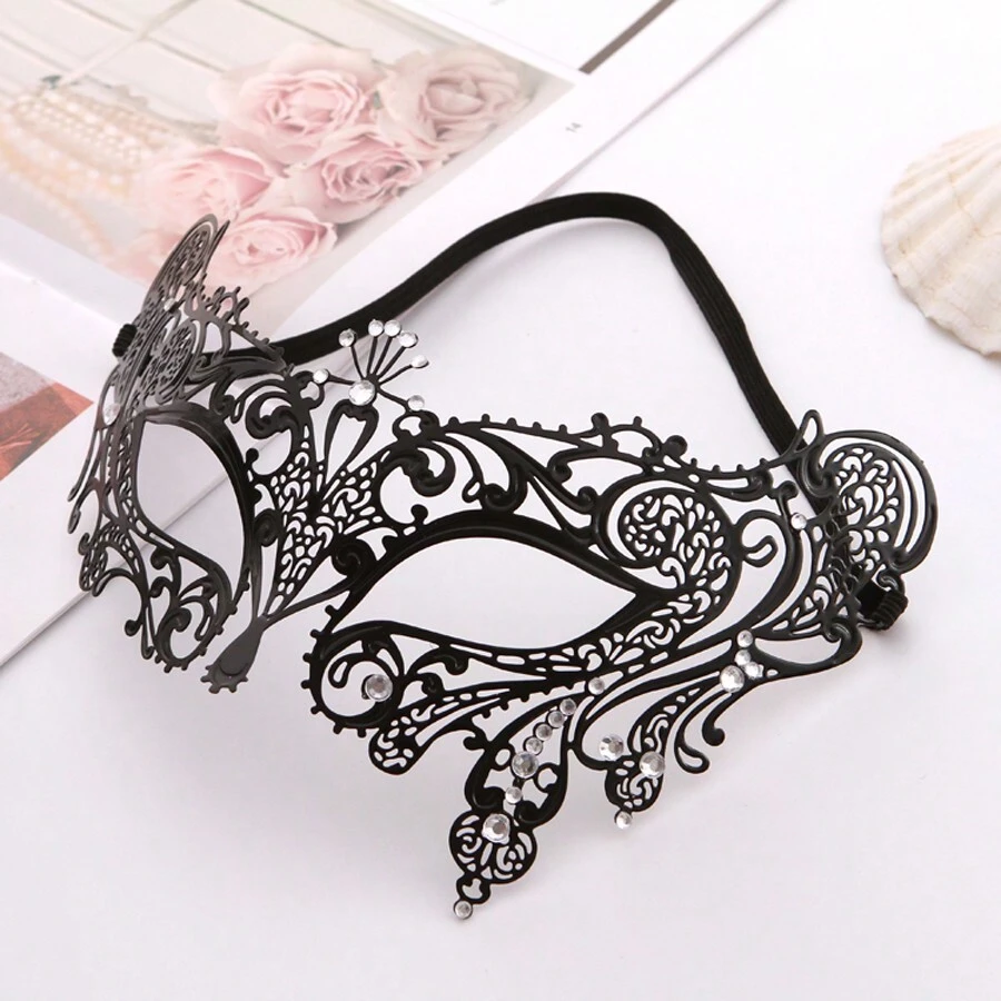 Italienische Venezianische High-end Metallmaske, Ultradünnes Metall Mit Diamanten, Party-performance Masquerade, Augenmaske - Schwartz