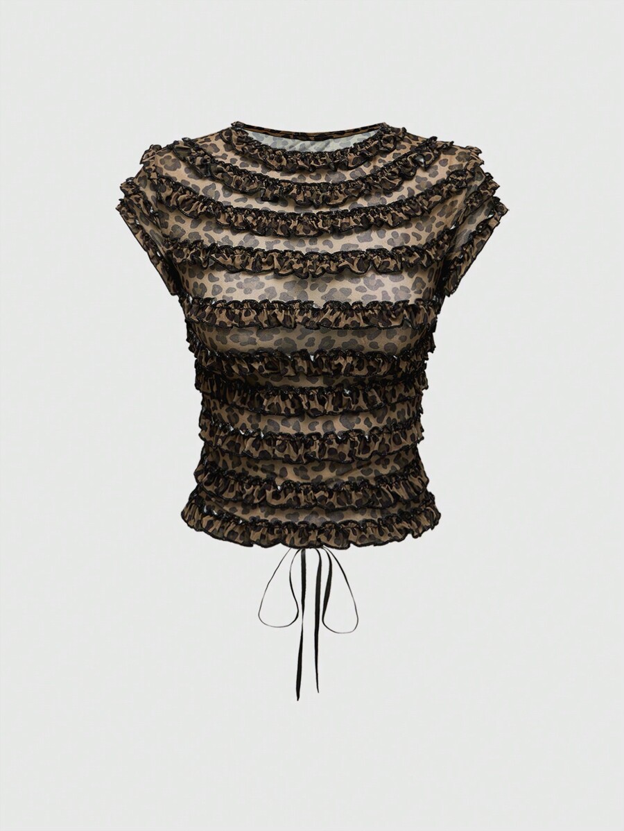 J-Fashion 2 Stücke Y2K Sexy Damen Set: Netzrückenfreier Bodycon Leopard Muster Volant Shorts
