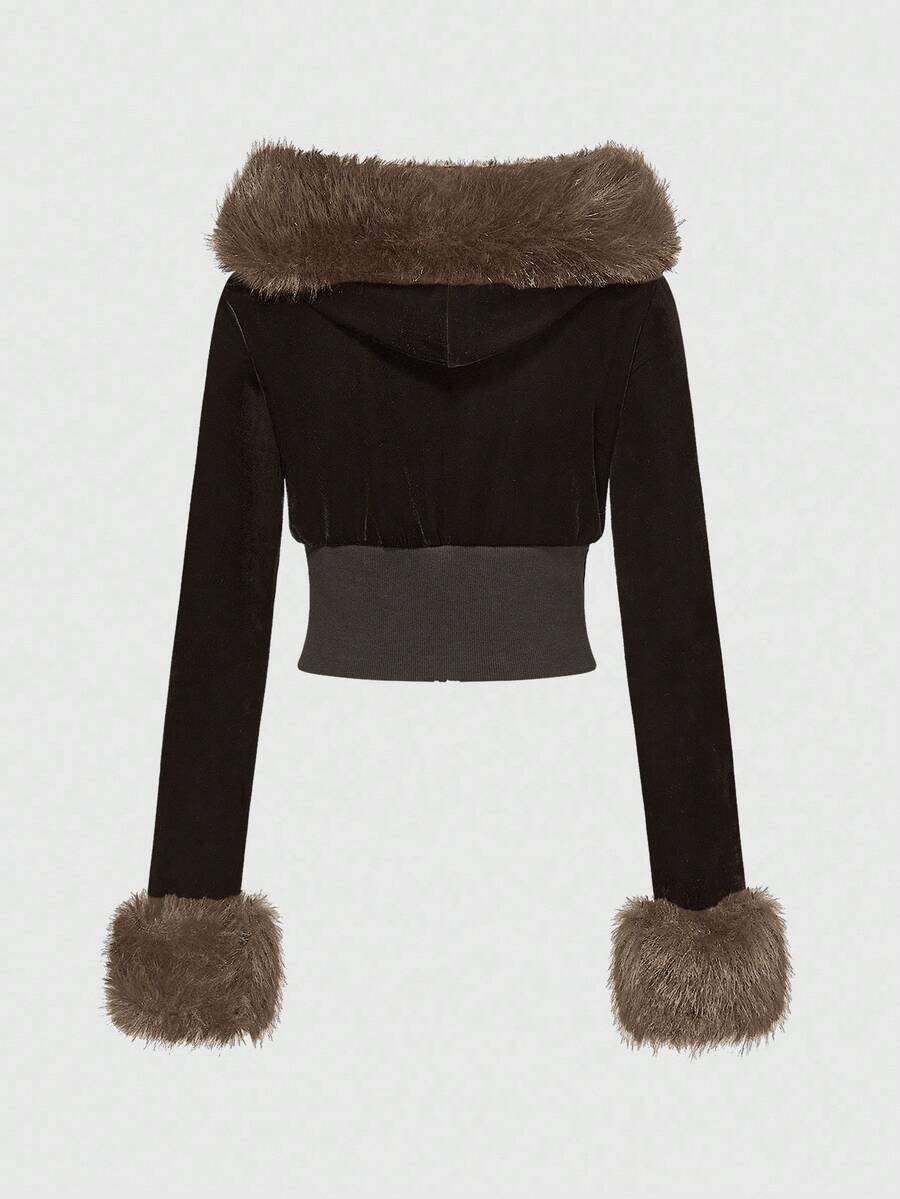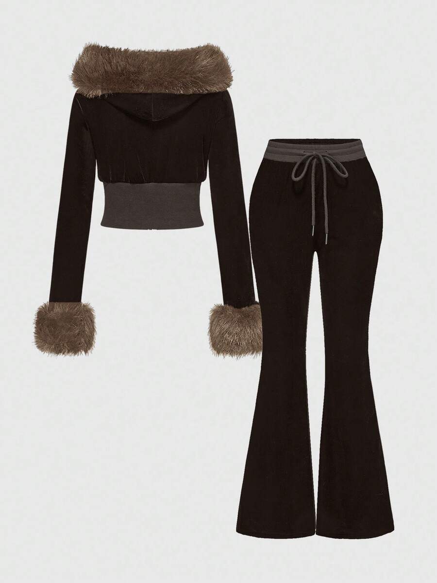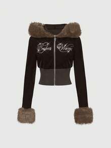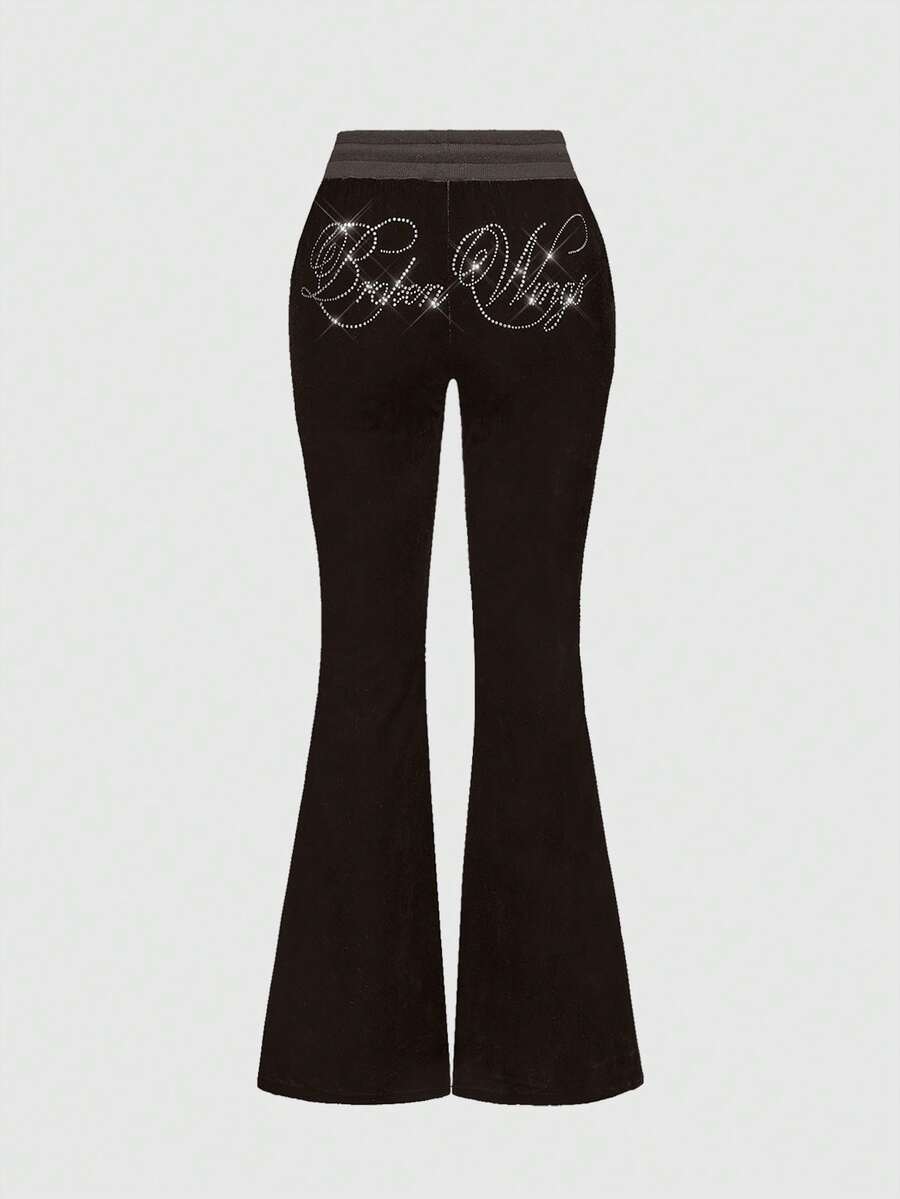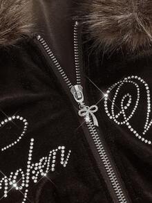 J-Fashion 2 Stücke Y2K Samt Sweatshirt Set mit Strass Verzierung für Damen, Herbst/Winter