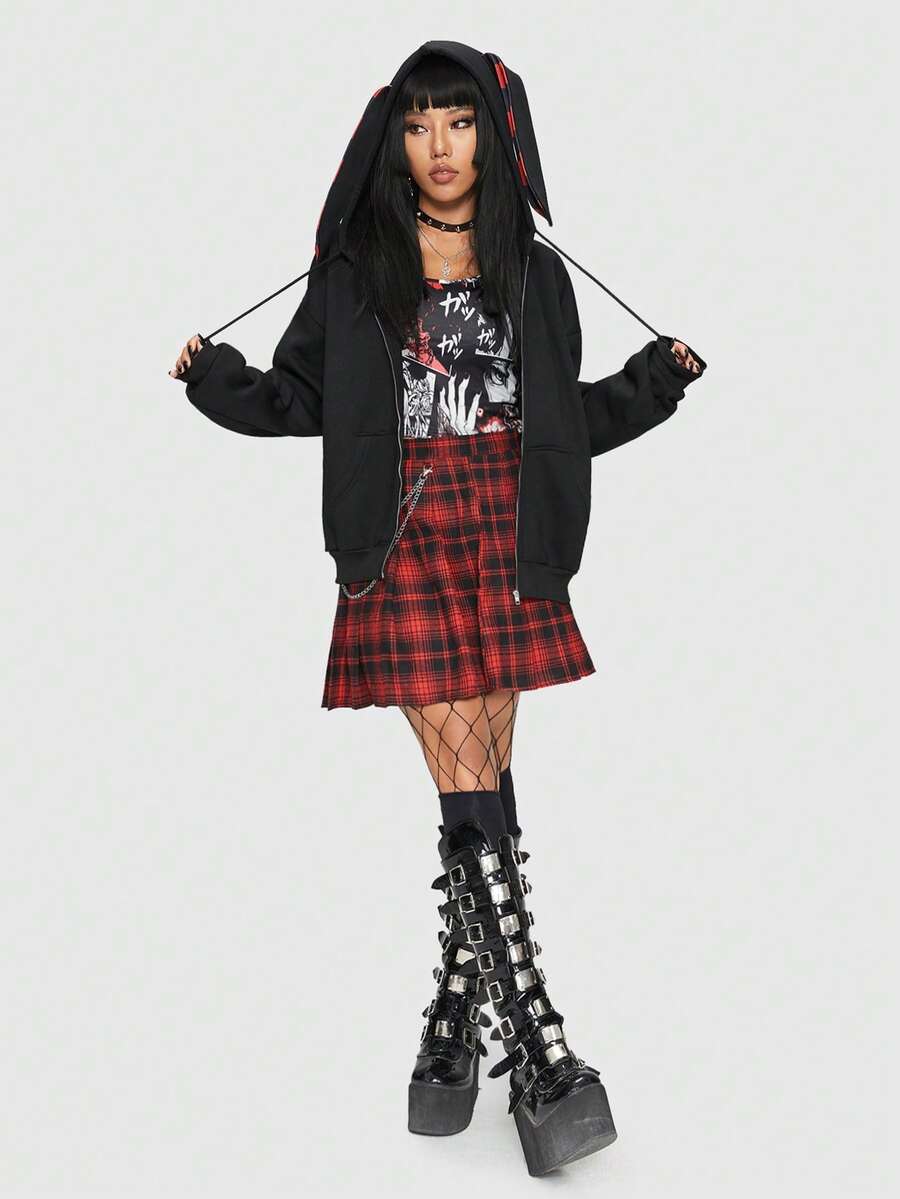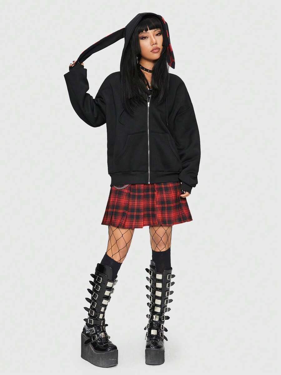 J-Fashion Hoodie mit 3D Ohr Design, Drop Shoulder Tunnelzug,