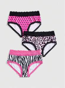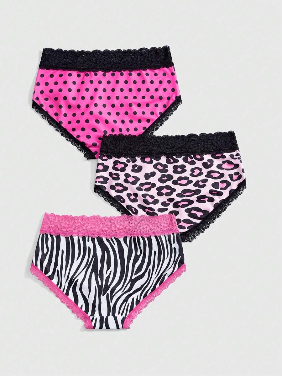 J-Fashion 3 Stücke Set Y2K Harajuku Stil Multi-Muster Dreieck Höschen Kombination (Leopard, Zebra, Polka Punkte, Spitze)