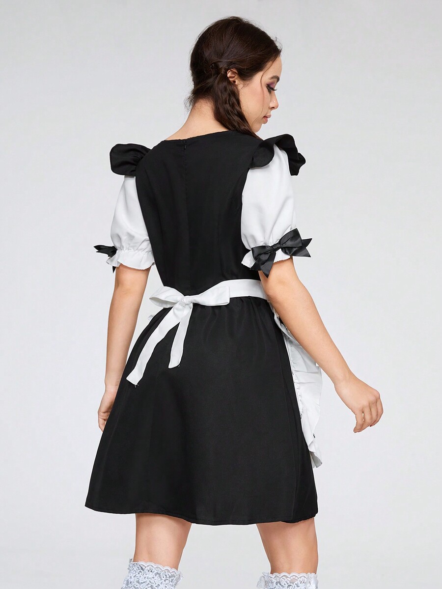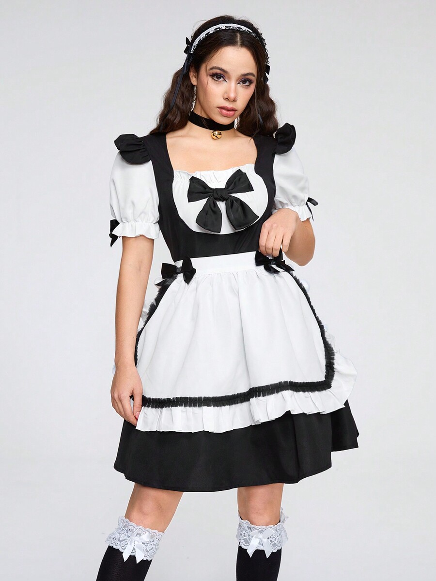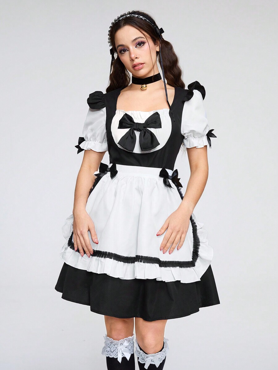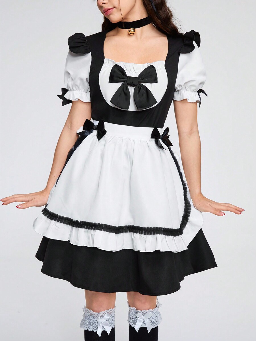 J-Fashion Maid Sweet Puffärmel Schürze Kleid Für Damen Mit Bowknot In Schwarz Und Weiß, Rollenspiel Kostüm