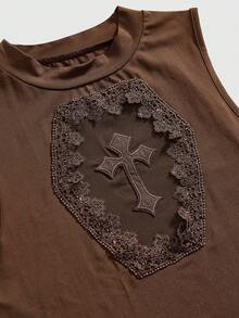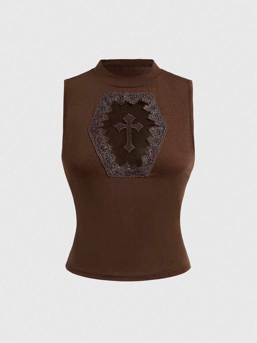 J-Fashion Ärmellose Damen-Tanktop mit Kreuz-Hohlstickerei