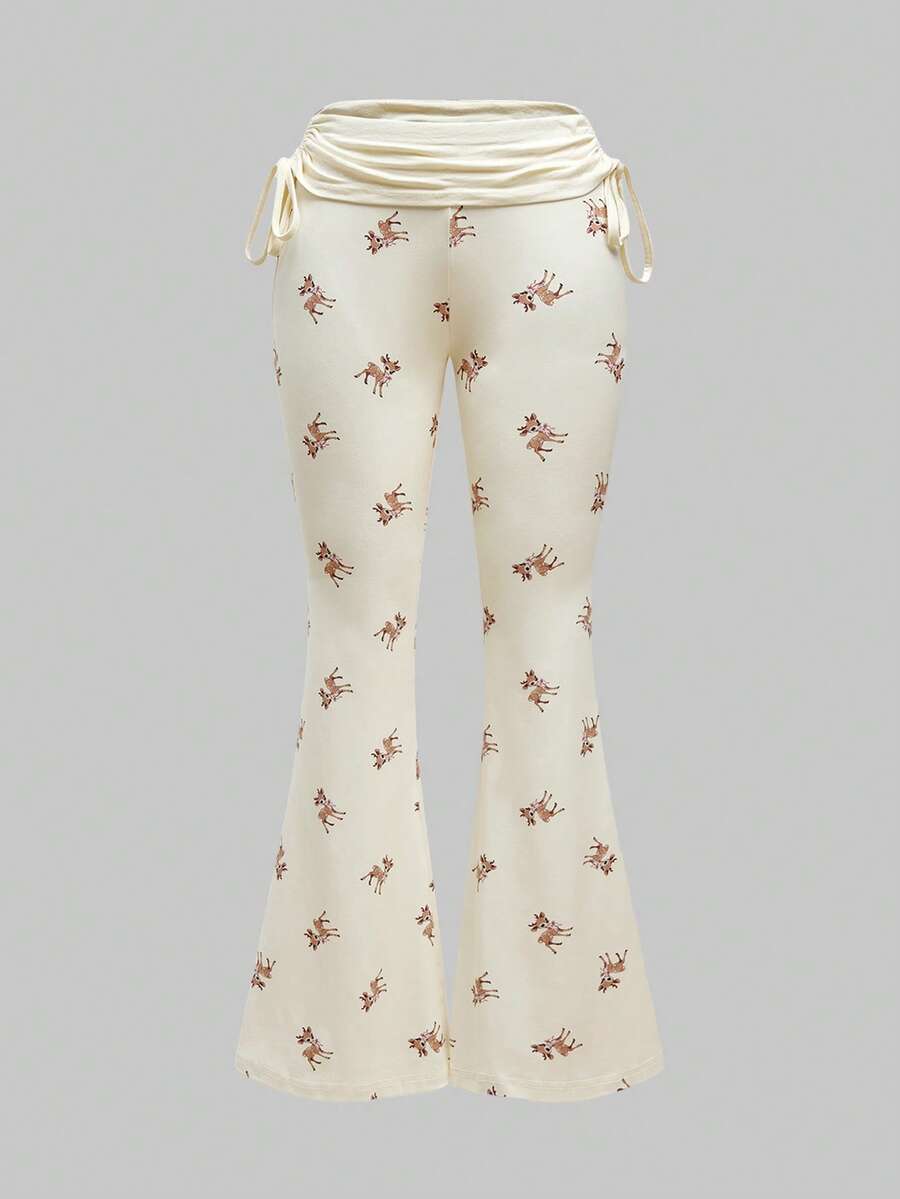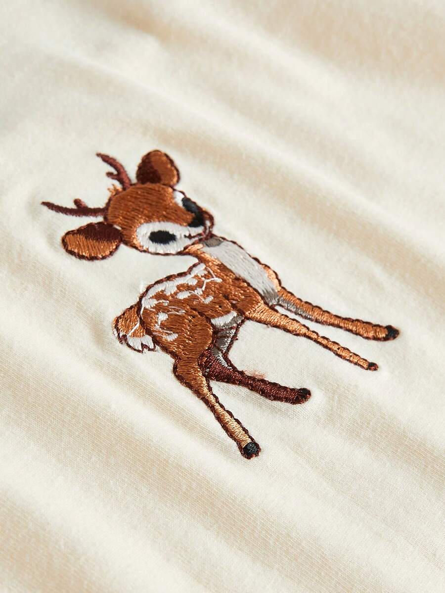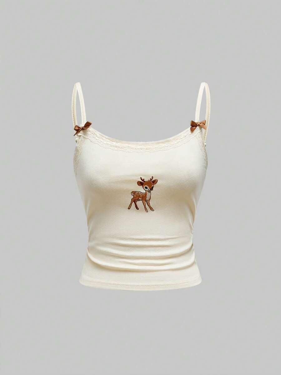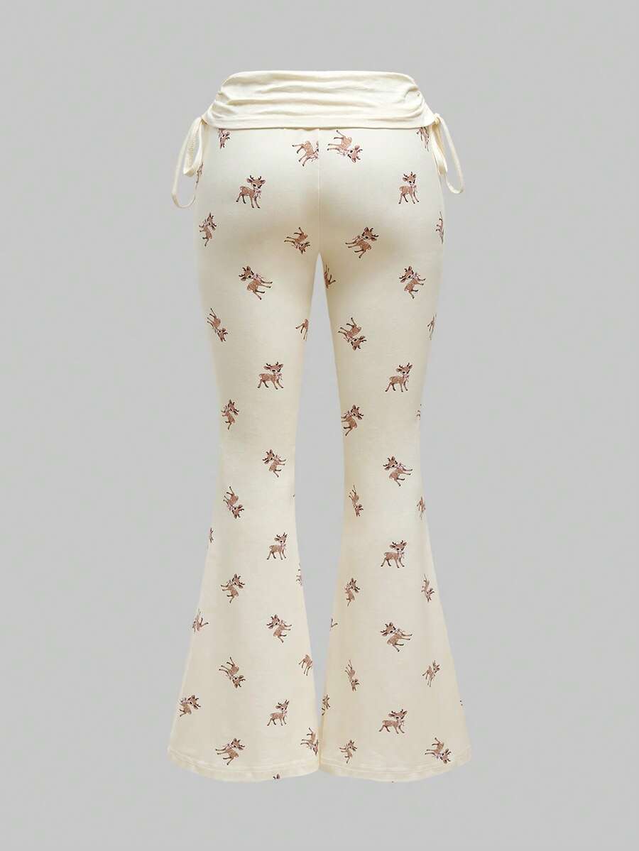 J-Fashion Süßes Set bestehend aus Bluse mit bestickter Spitze mit Hirschmotiv und Hose mit Hirschmuster-Allover-Muster