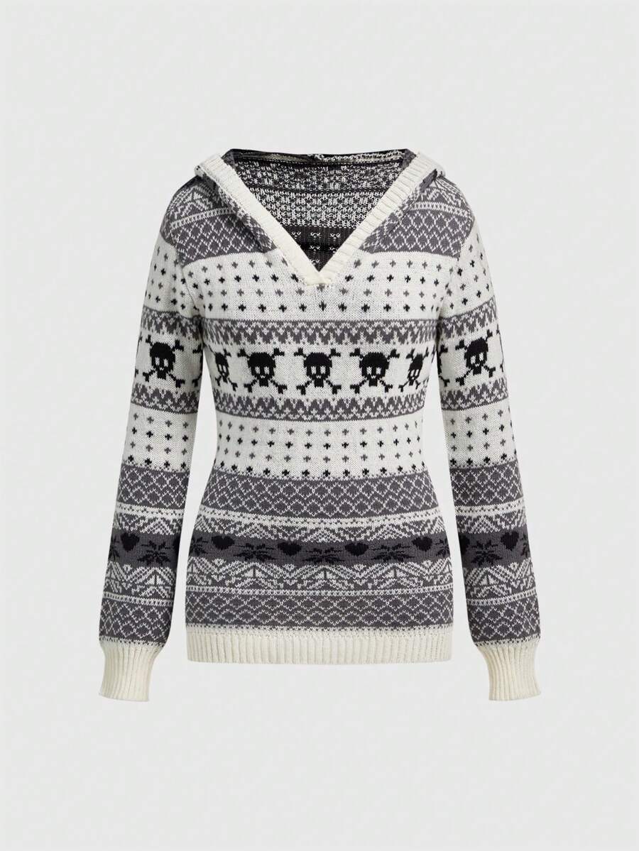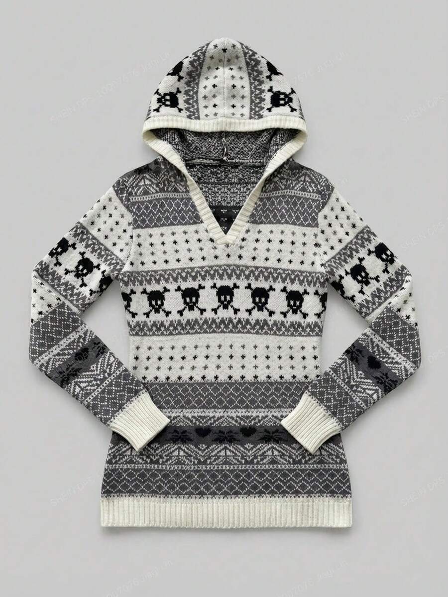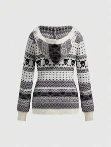 J-Fashion Halloween Totenkopf Jacquard Muster Pullover Hoodie Pullover für Frauen, Herbst/Winter