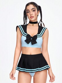 J-Fashion Sexy Matrosenuniform-Set mit Schleifentop, Faltenrock und Tanga-Unterwäsche