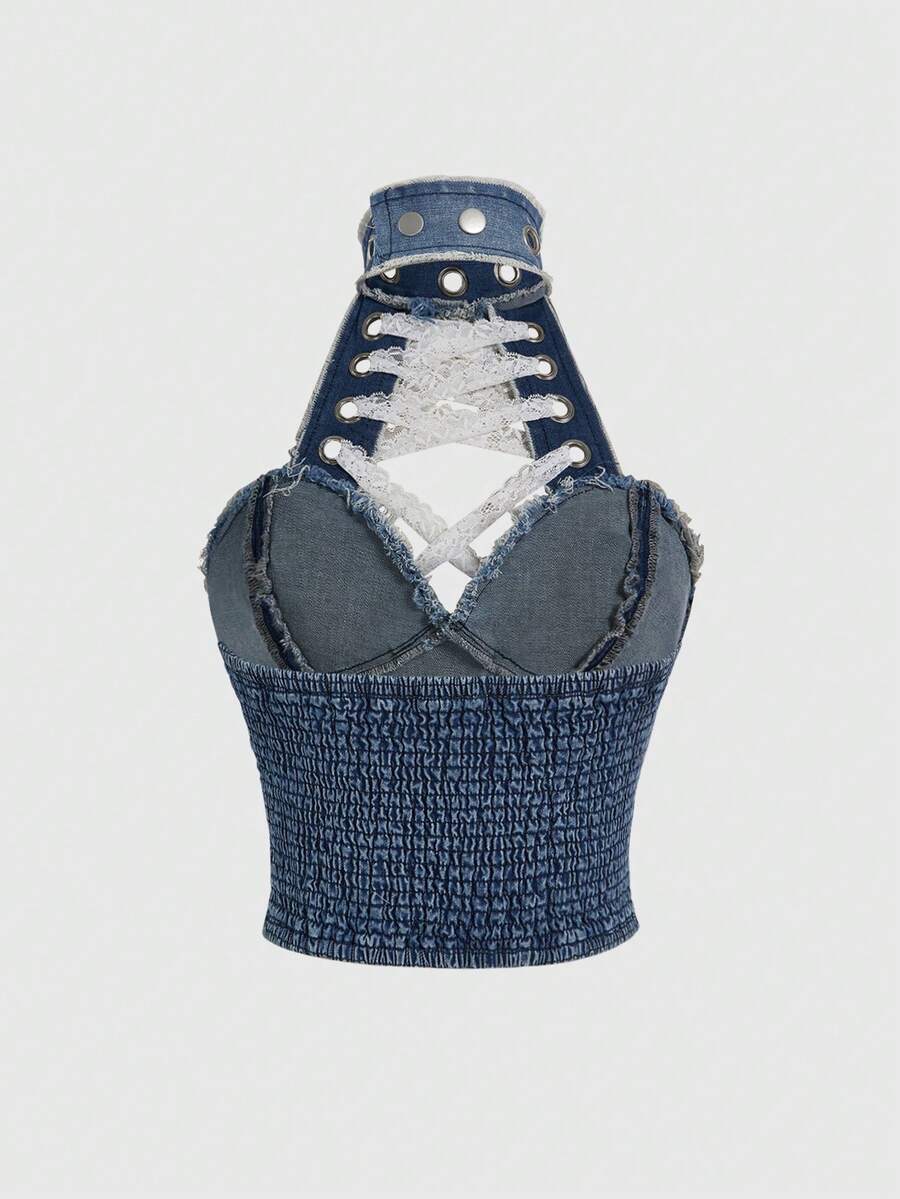 J-Fashion Y2K sexy Crop Denim-Bluse mit Schnürung für Frauen
