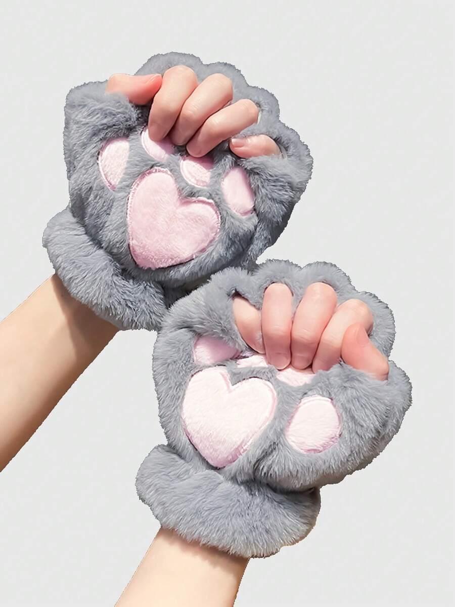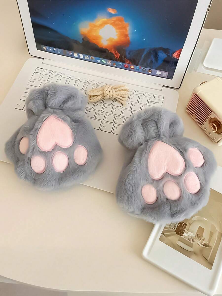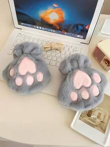 Kawaii 1 Paar Plüsch Katzenpfoten fingerlose Handschuhe, geeignet für den täglichen Gebrauch