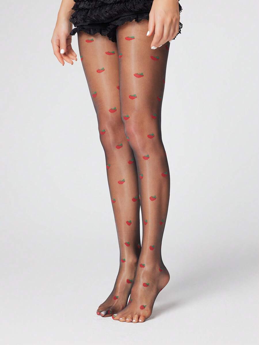 Kawaii 1 Paar sexy Erdbeer-gemusterte Strumpfhose, süßes Fruchtdesign Strumpfhose, ultraleichte elastische durchsichtige Leggings