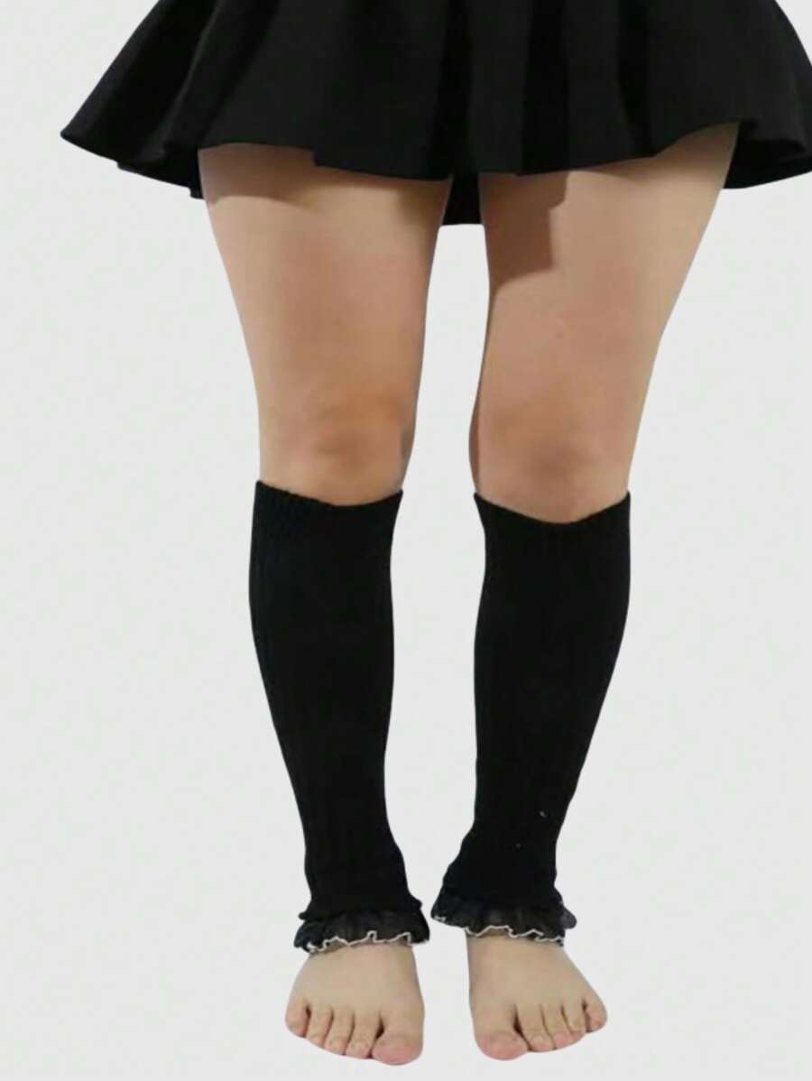 Kawaii 1 Paar Damen Gothic Schwarze Spitze Gestrickte Beinwärmer, geeignet für alle Jahreszeiten, Halloween