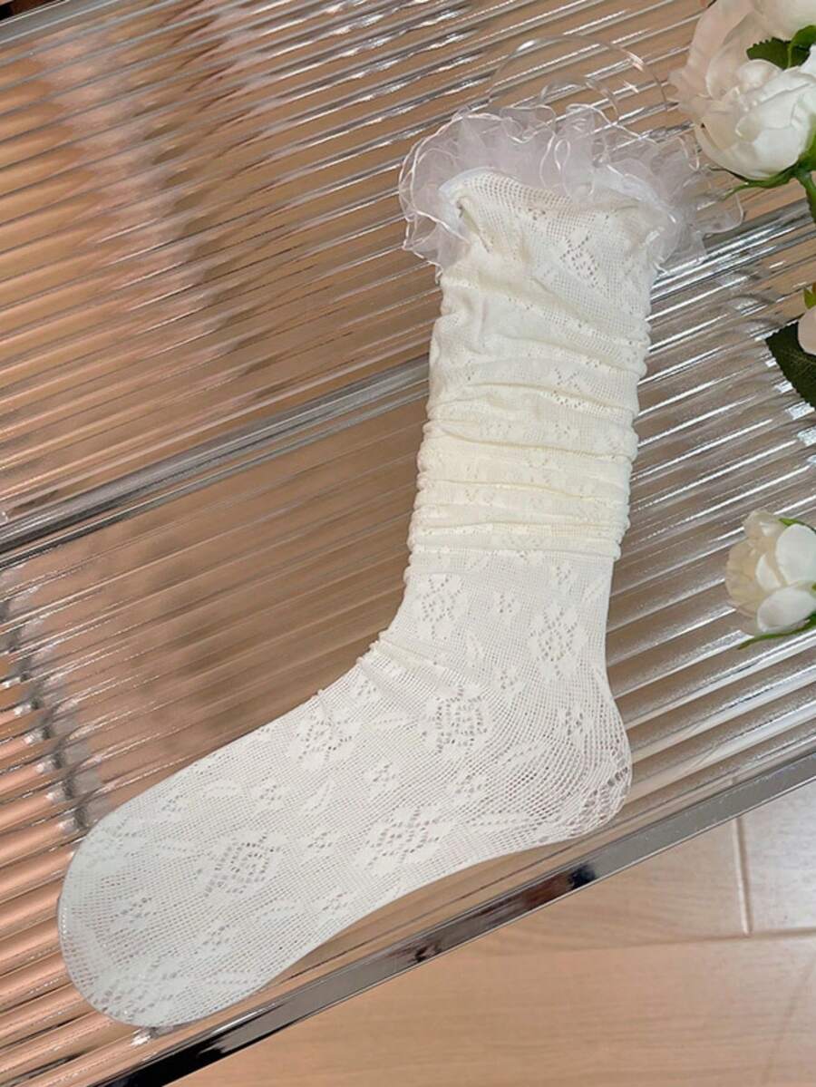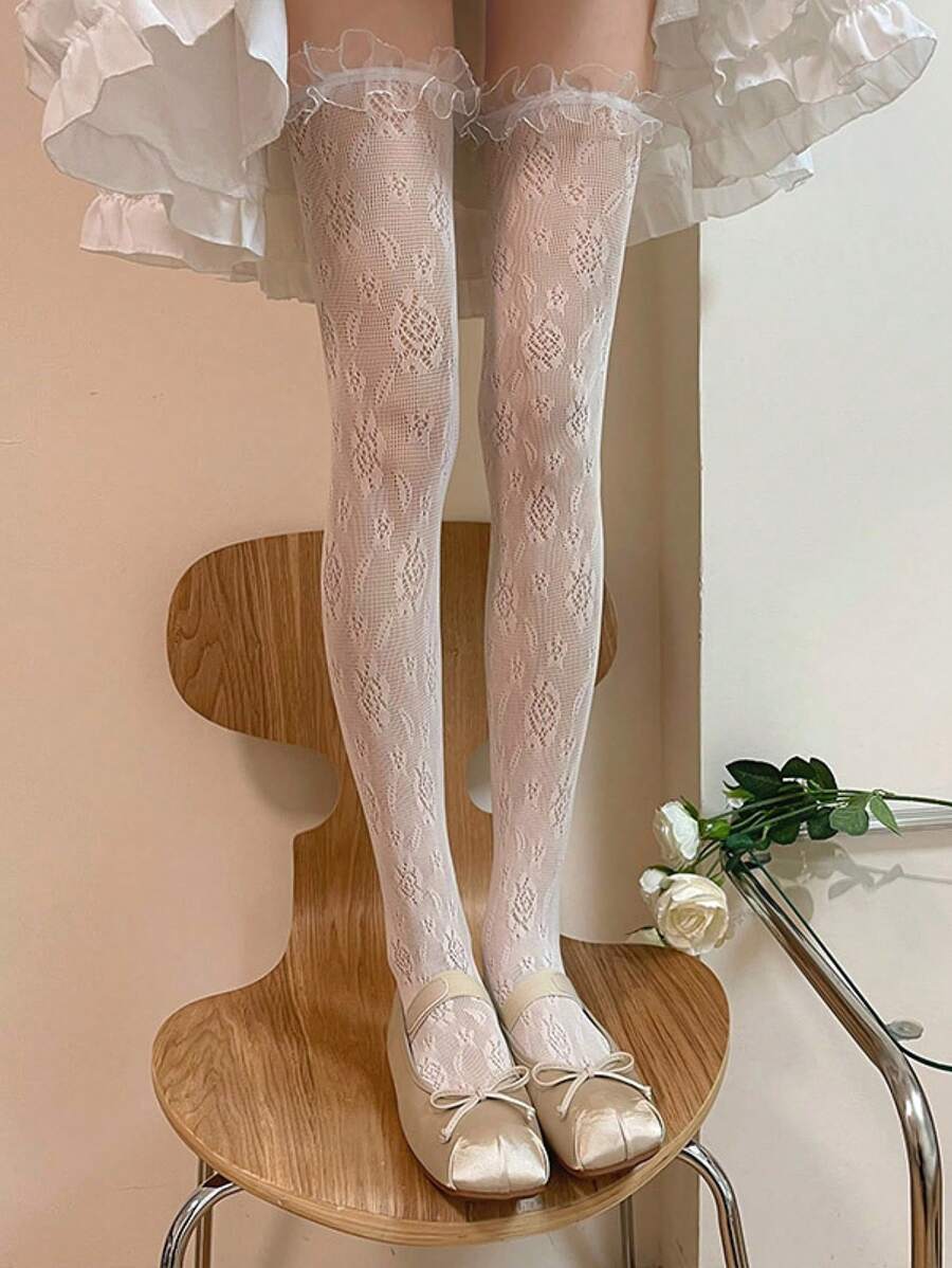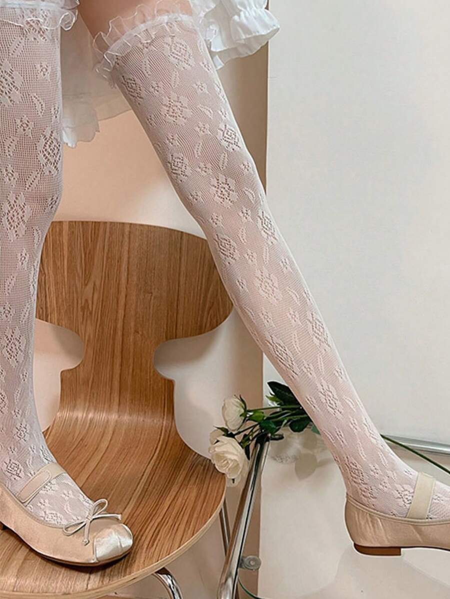 Kawaii 1 Paar Overknee-socken Mit Spitzenblumen (bildänderung Bald)