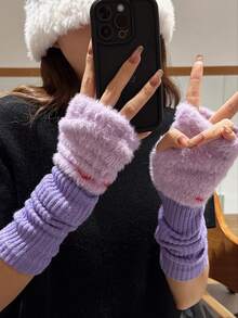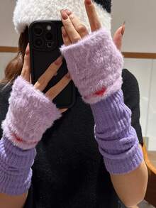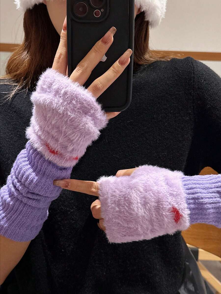 Kawaii 1 Paar Weiche Gestrickte Flickwerk Handschuhe Für Herbst Und Winter