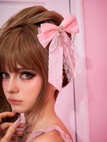 Kawaii 1 Stück süße Schleife einfarbiger Haarclip, süßer Rokoko-Stil Ketten-Kreuz-Spitzenband Ente Clip, handgemachtes Lolita Tee-Party vielseitiges Haaraccessoire