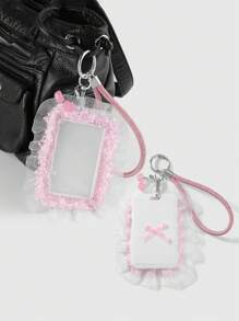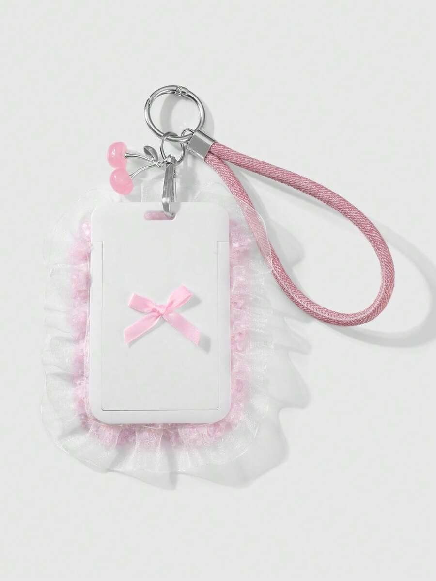 Kawaii 1 Stück Niedliches Mädchen Mode exquisites hochwertiges rosa Spitzen-Künstliche Kirsche Anhänger im INS-Stil, Ausweishalter mit klarer Karte, Schlüsselanhänger & Taschenbehang, geeignet für Mädchen & Frauen, ideales Geschenk