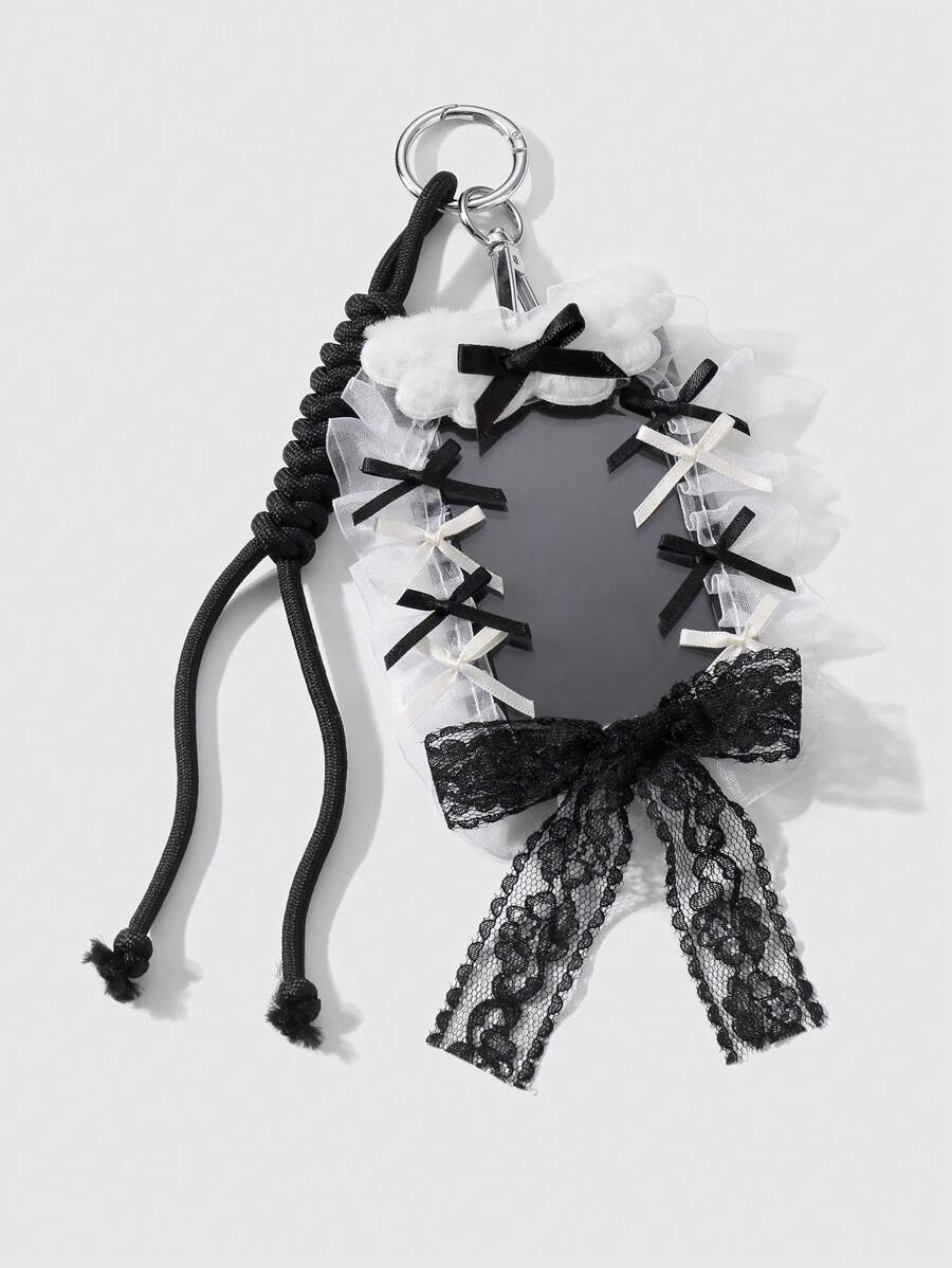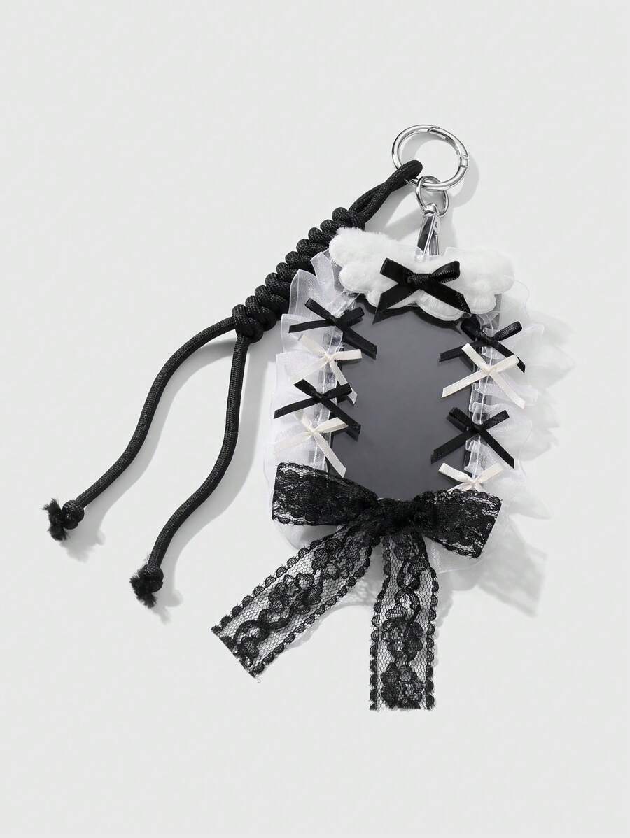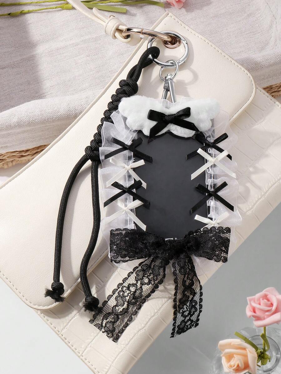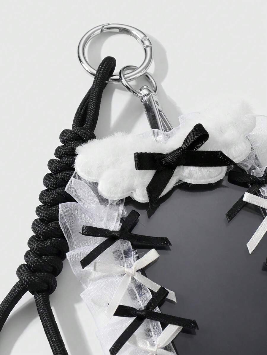 Kawaii 1 Stück Im Gothic-Stil personalisierte dunkle Kollektion: Weiße Mesh-Spitzen-Schleife Engelflügel Karte, schwarzer geflochtener Lanyard Halter für Ausweishalter, Schlüsselanhänger, Taschenbehang, geeignet für Büromitarbeiter, Studenten, Alltagskleidung, Urlaubsgeschenk