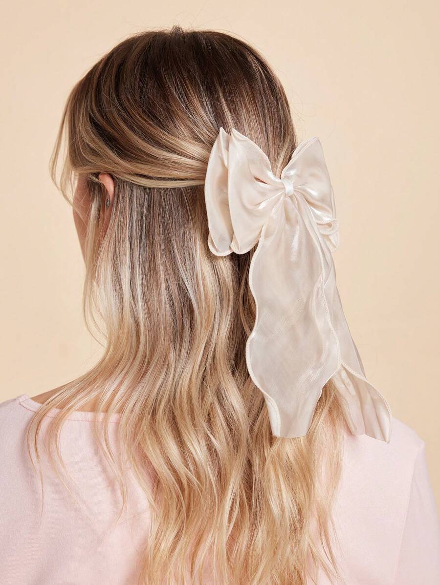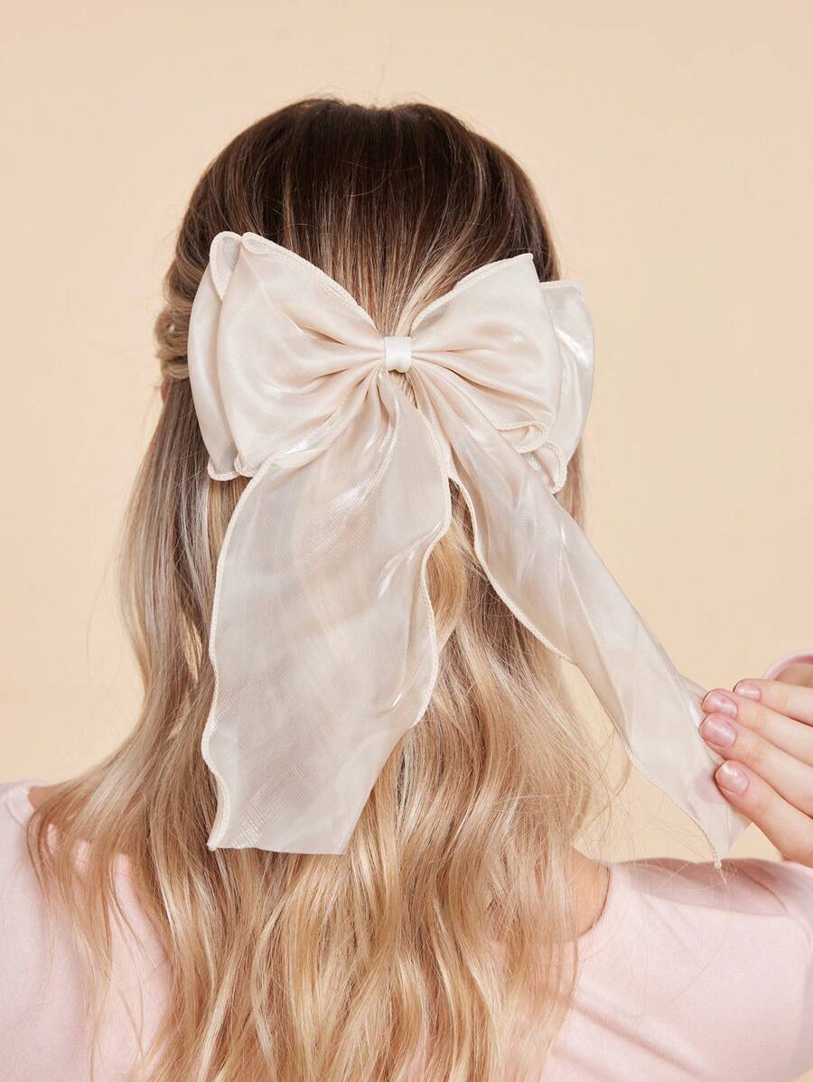 Kawaii 1 Stück koreanischer, süßer, eleganter und modischer "Vanille Mädchen" beiger Mesh-Satin Schleifen Haarclip Haarspange für Frauen, geeignet für den Alltag, Geschenke Valentinstag