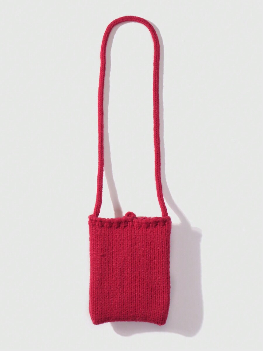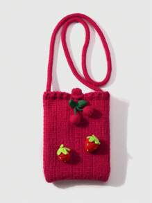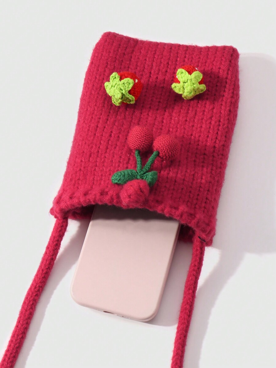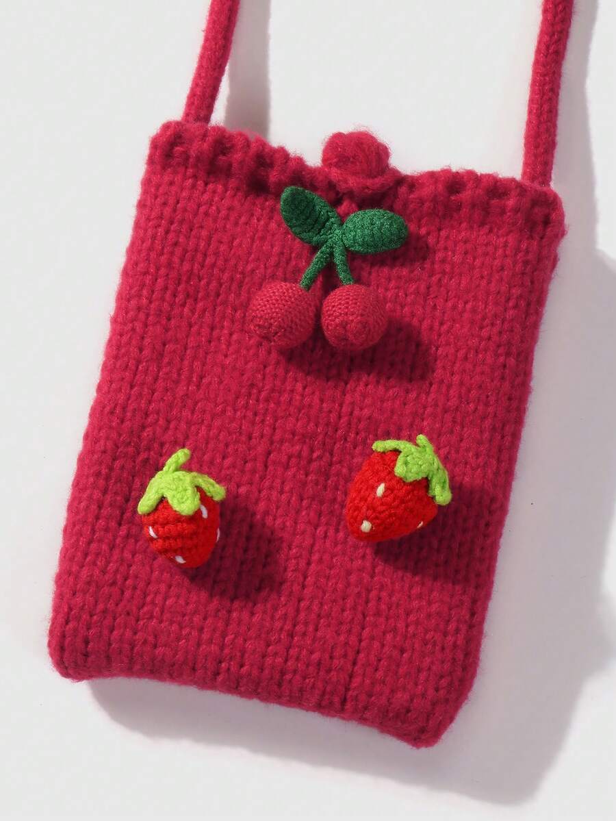 Kawaii 1 Stück koreanische einfache, süße, vielseitige hochwertige rote gestrickte Erdbeere/Kirsche Dekor Umhängetasche/Umhängetasche/Handytasche, geeignet für Frauen, ideal für den täglichen Gebrauch & Geschenke, Herbst/Winter