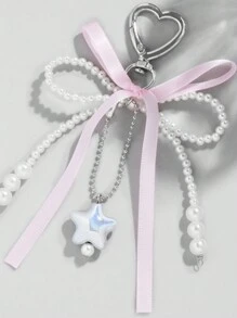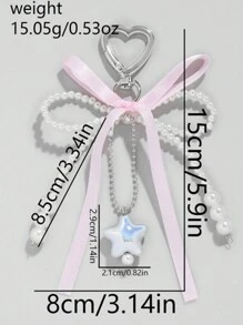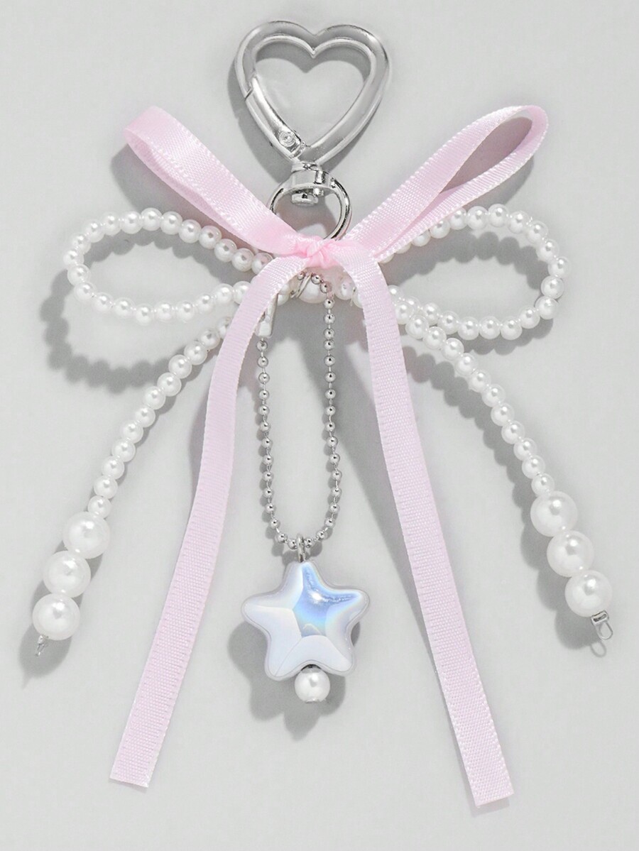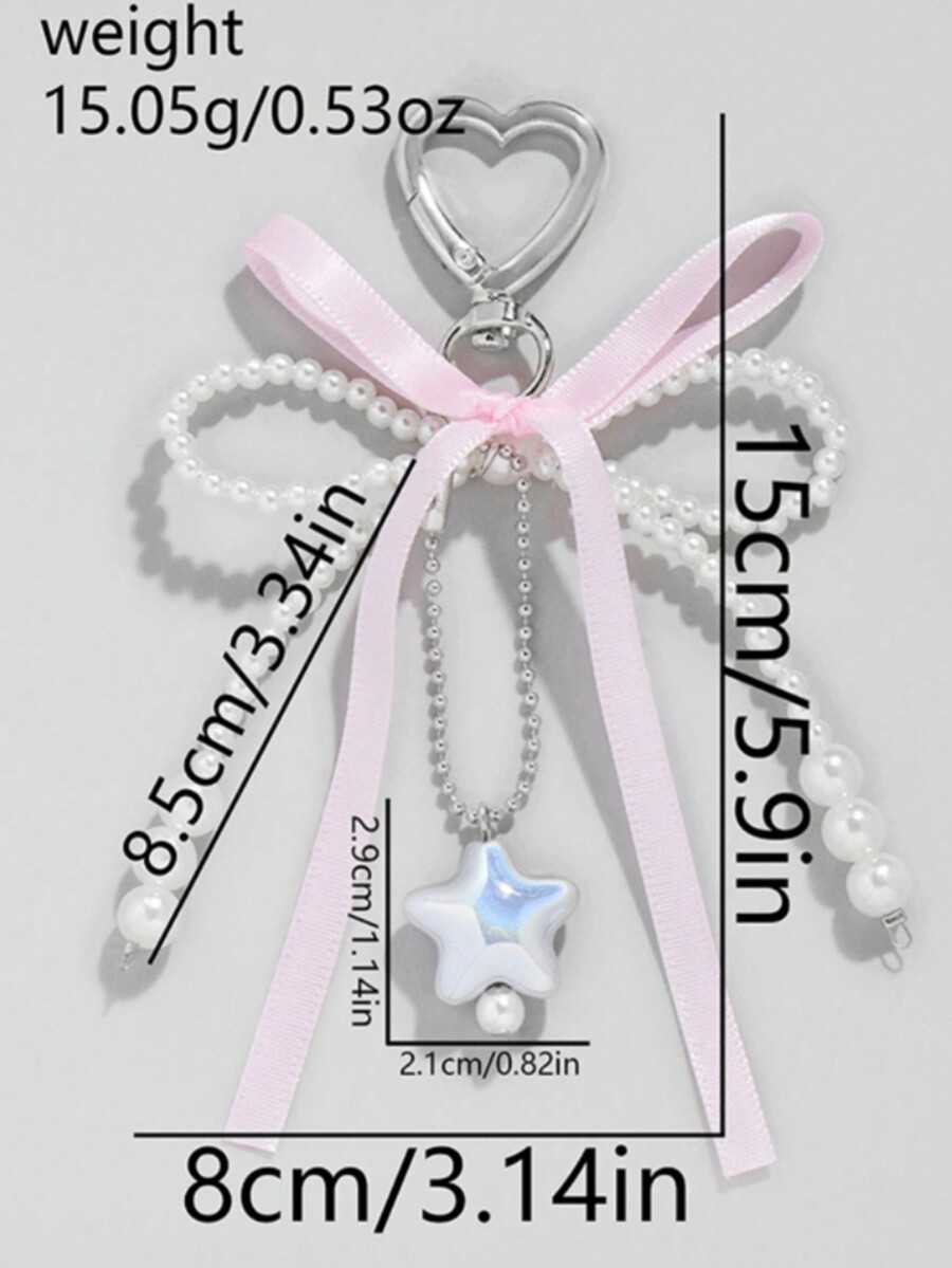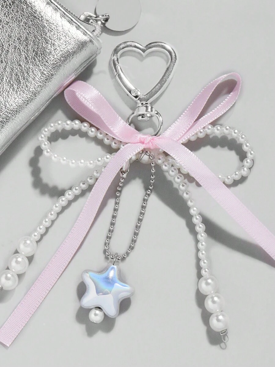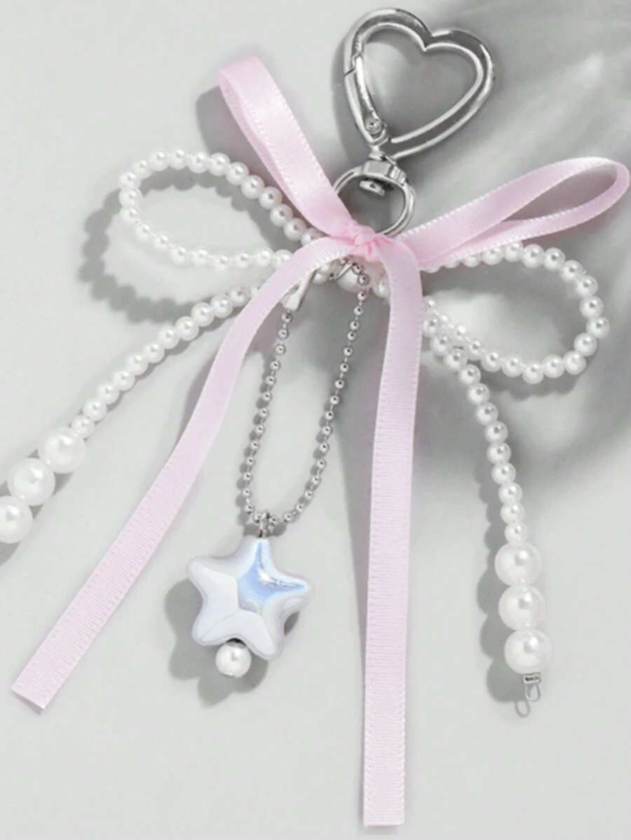 Kawaii 1 Stück bezaubernde Sweet Style YSK Pink Schleife mit bunten silbernen Sternen Schlüsselanhänger Taschenaufsatz