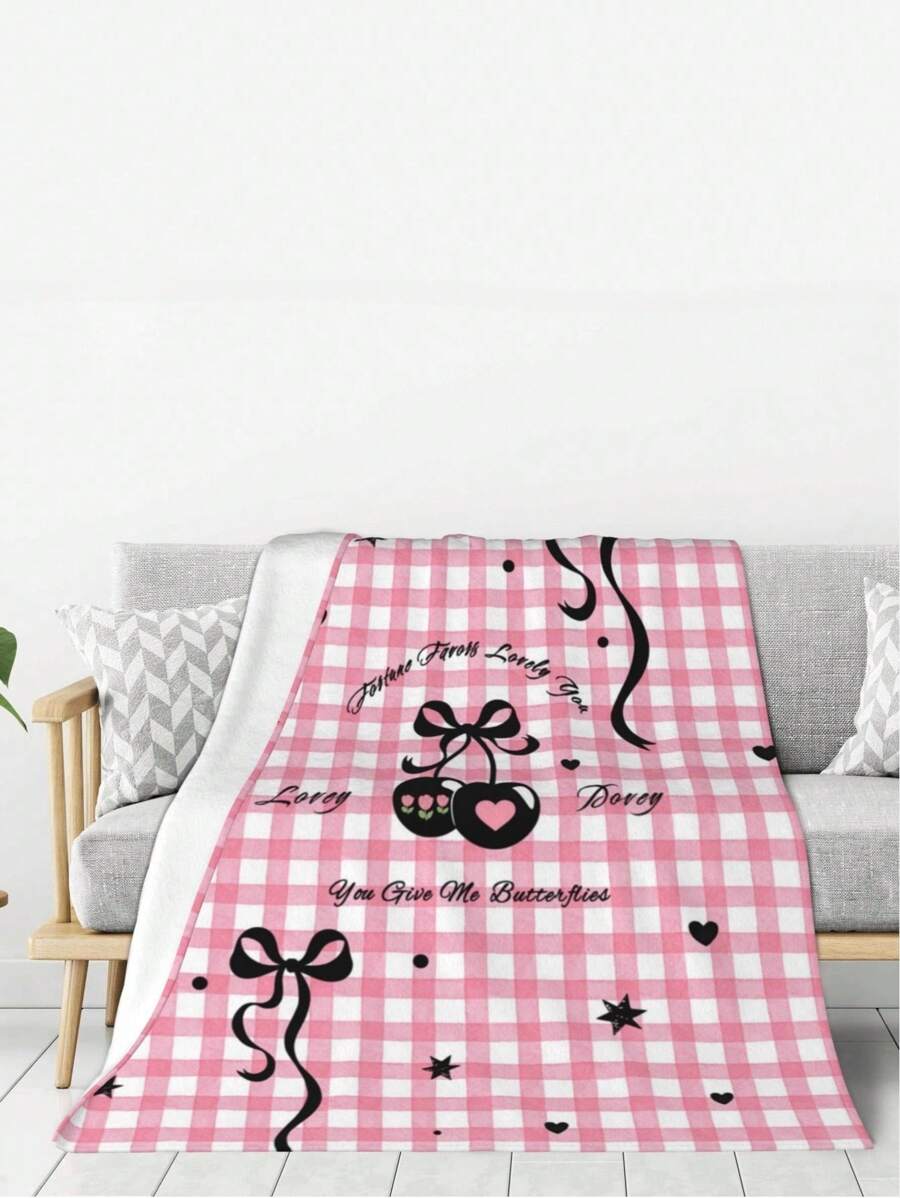 Kawaii 1 Stück Ein-Flanell bedruckte Wohndecke mit Schleifenmuster. Sie ist weich und bequem, geeignet als Tagesdecke, Sofabezug, Outdoor-Wohndecke für Schlafzimmer, Bürodecke usw. Es ist auch ein tolles Geschenk für Feiertage.