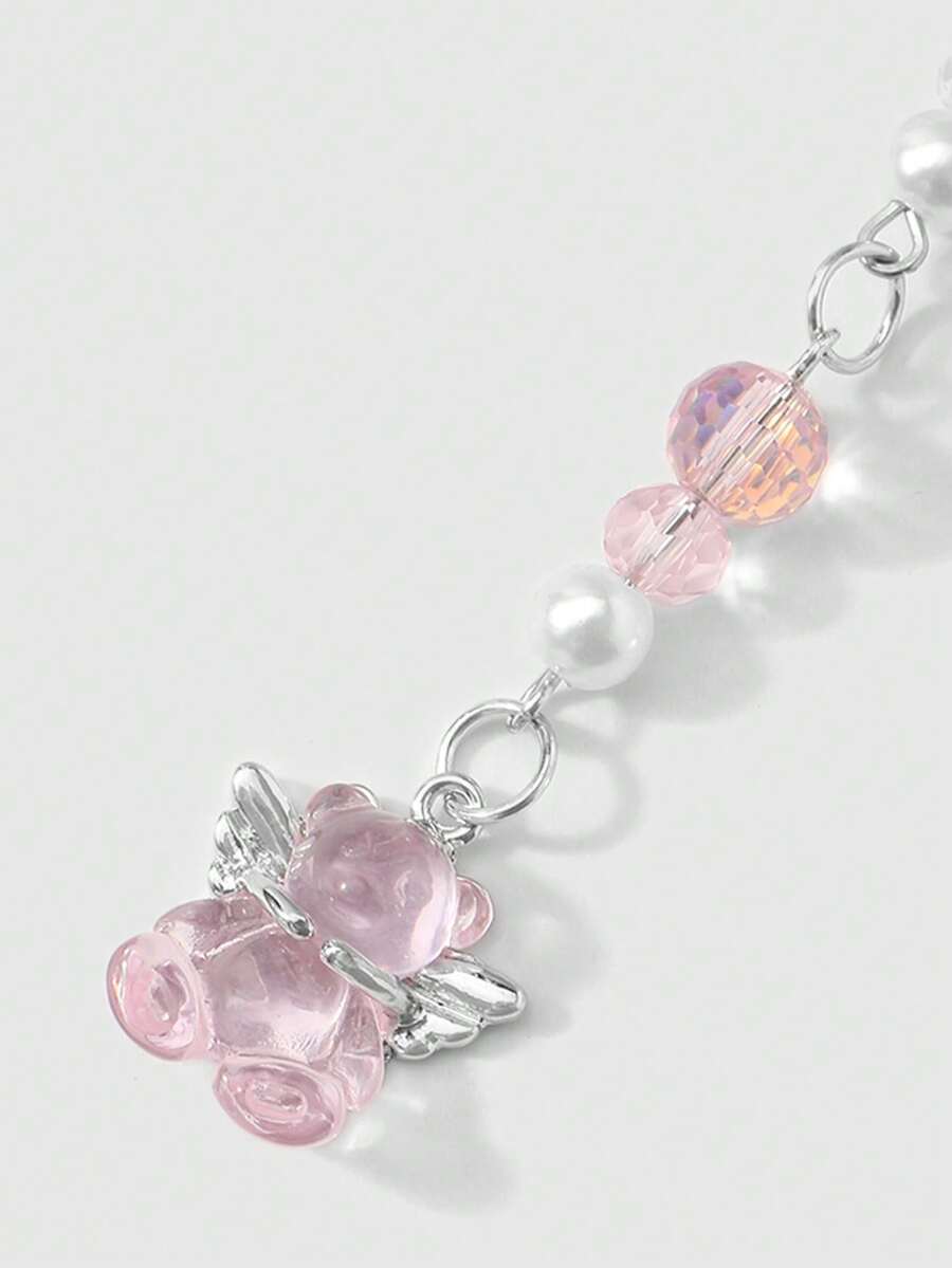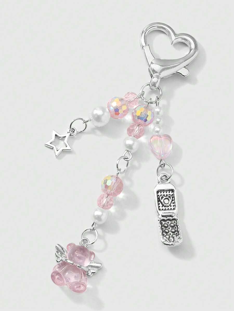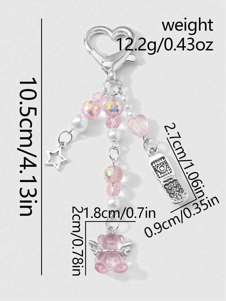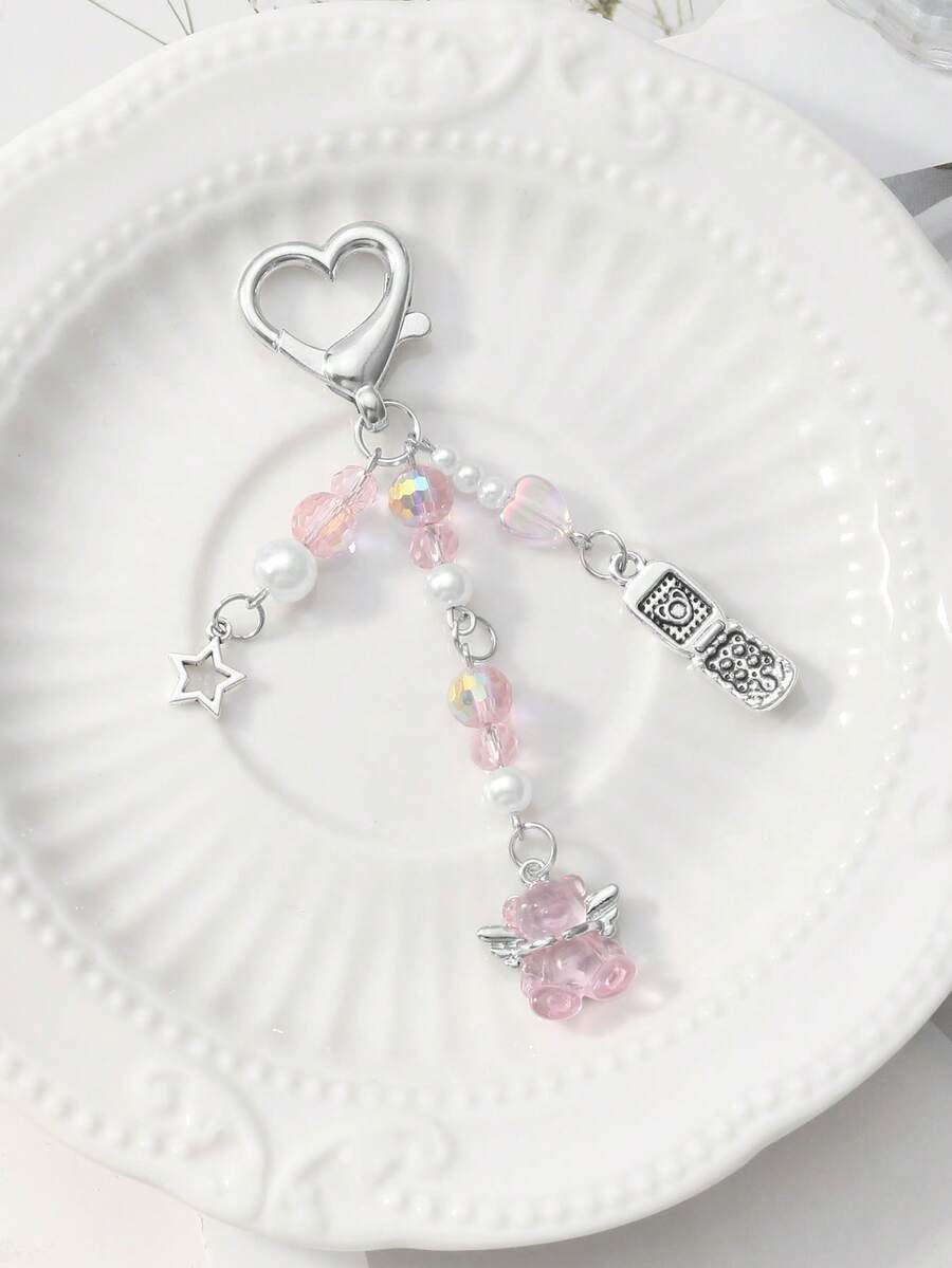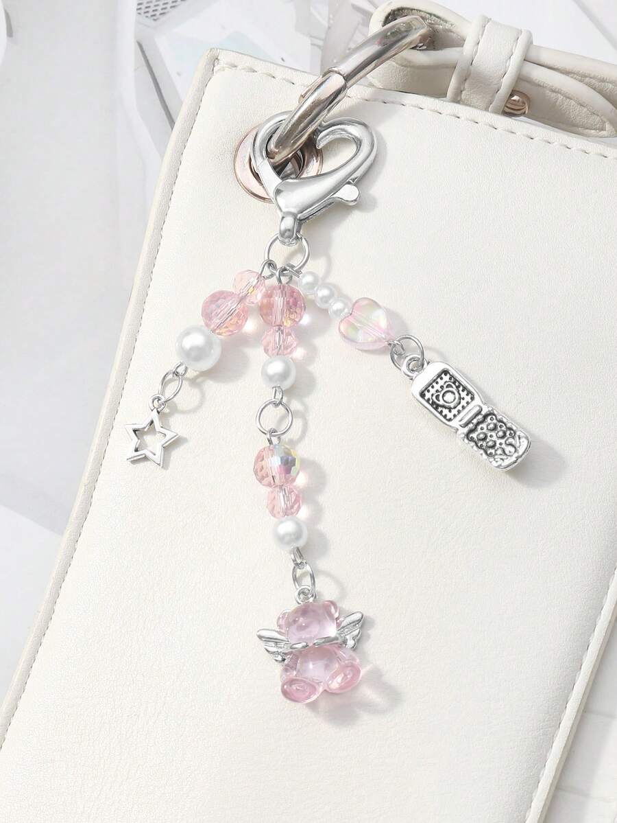 Kawaii 1 Stück raffinierter & süßer Mädchen minimalistischer akademischer Stil Silberkette mit Perle & Kristall runden Kugeln, Sternen, Erdbeere Schleife Cartoon Handy Anhänger Schlüsselanhänger Taschenanhänger, geeignet für Frauen, Alltagsmode, Geschenk zu Feiertagen, Valentinstag