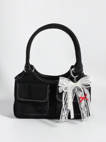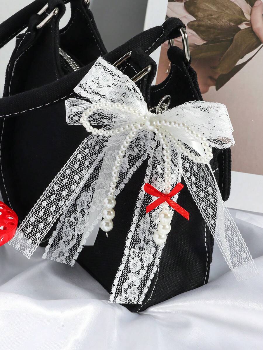 Kawaii 1 Stück süße Y2K Stil weiße Spitze Schleife Taschenbandel, Perlen Schleife Dekor Anhänger
