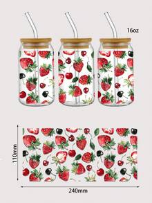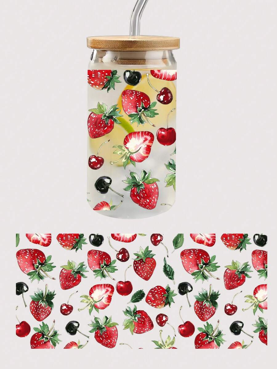 Kawaii 1 Stück UV Thermal Transfer Muster Erdbeer & Kirschmuster Kristallsticker für Tassen
