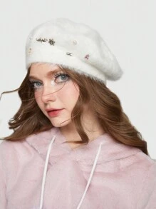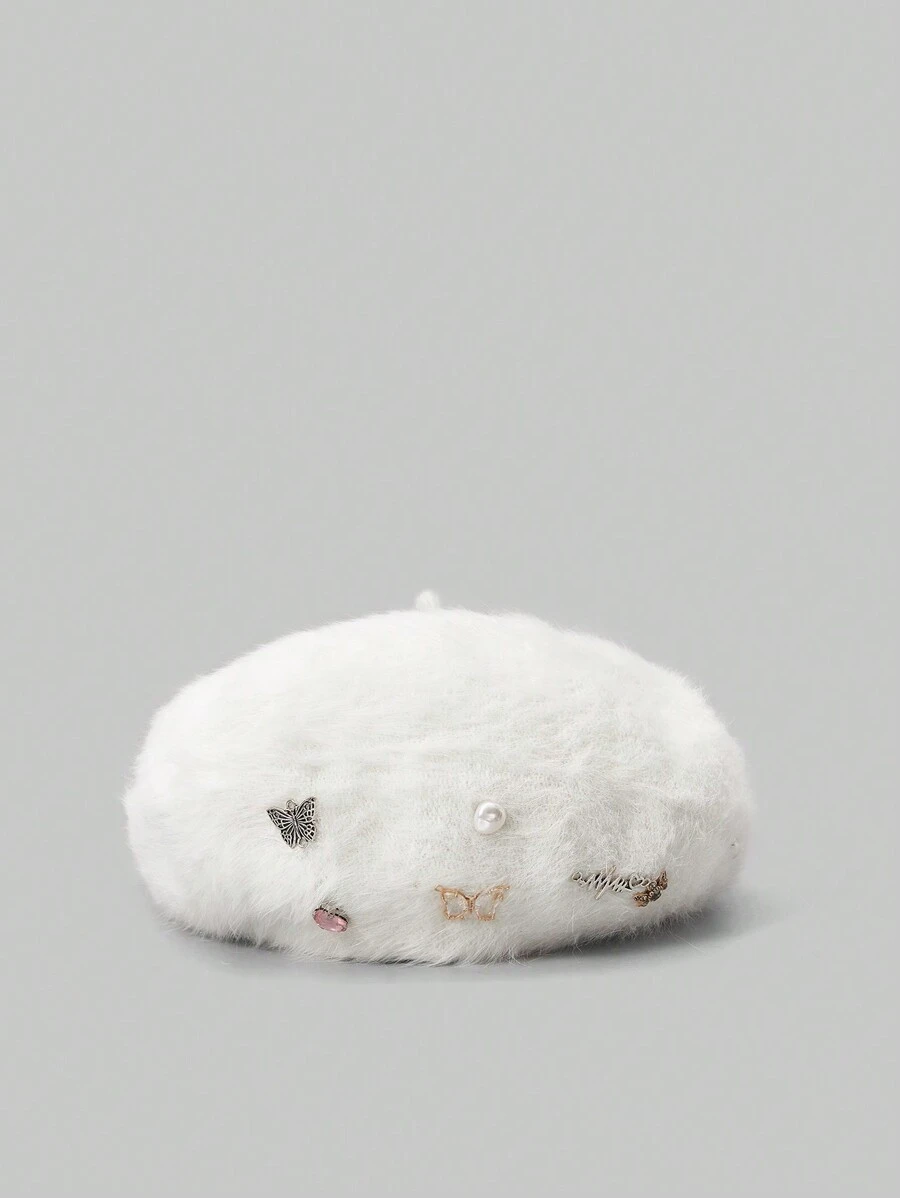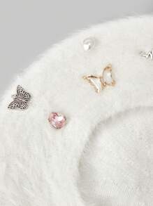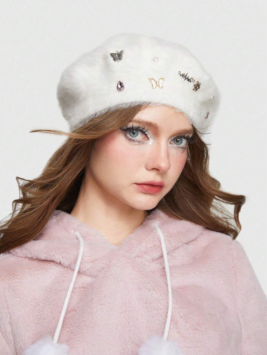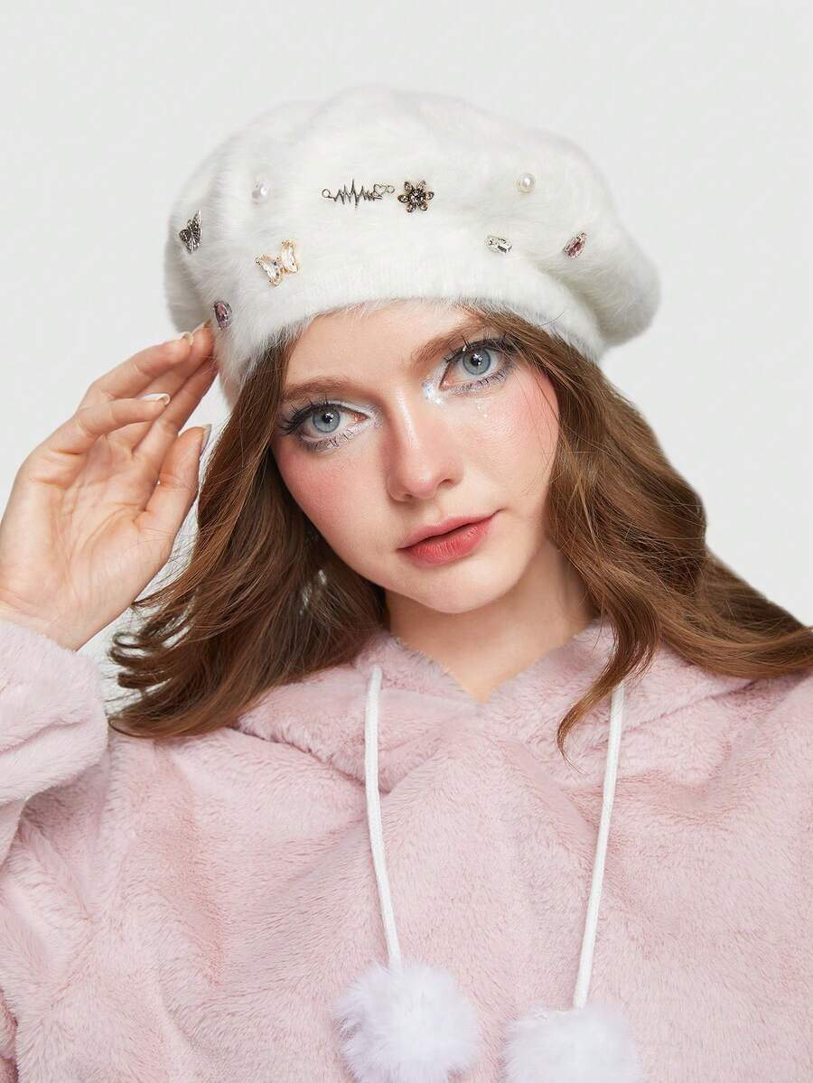 Kawaii Frauen 1 Stück Baskenmütze Strass, Blume & Schmetterling Dekor,