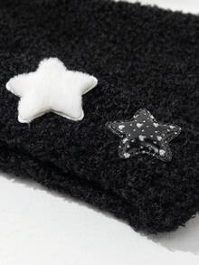 Kawaii 1 Süße Und Warme Damen-strickmütze Mit Lammwolle, Sternform Und Katzenohren-design Für Den Täglichen Gebrauch