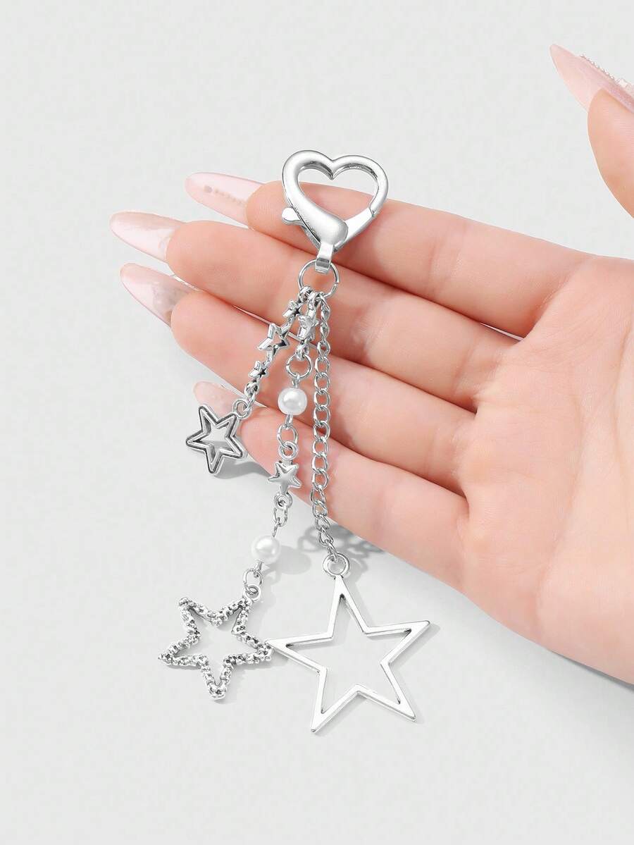 Kawaii 1 Stück Y2K Lässig Minimalistischer Retro College Stil Künstliche Perle Silber Cut Out Kette Stern Anhänger DIY Herz Schlüsselanhänger Taschenbaumler, geeignet für Frauen, Alltagstragen, Urlaubsgeschenk