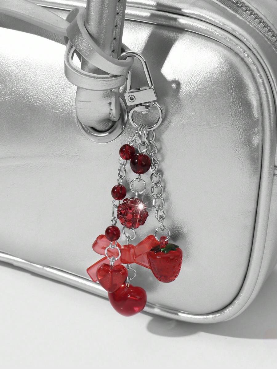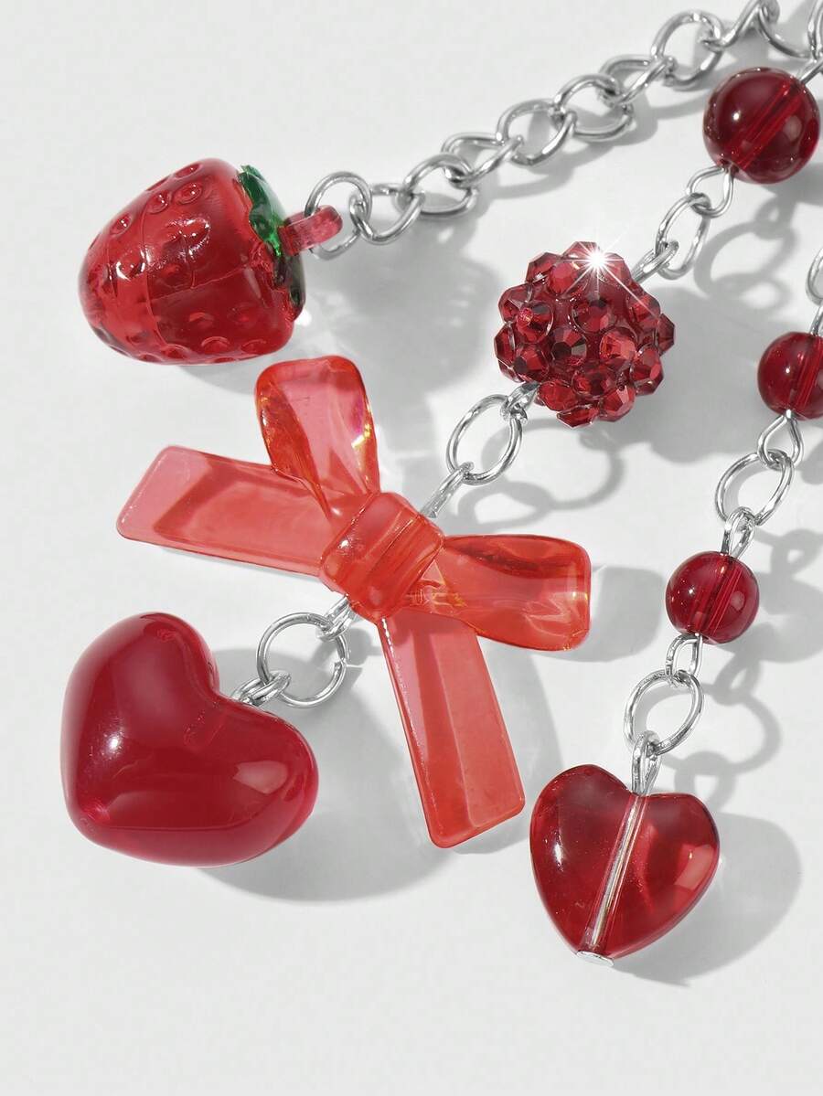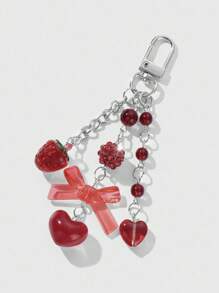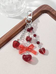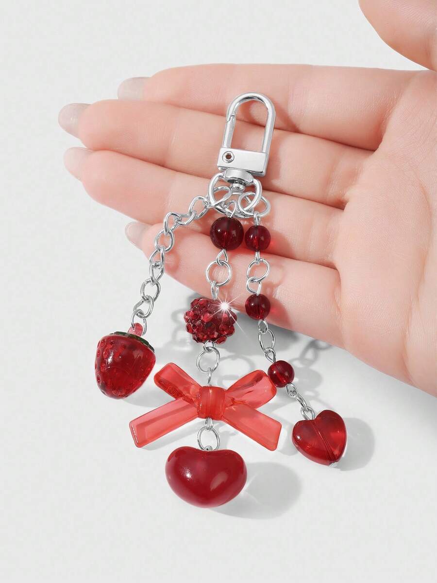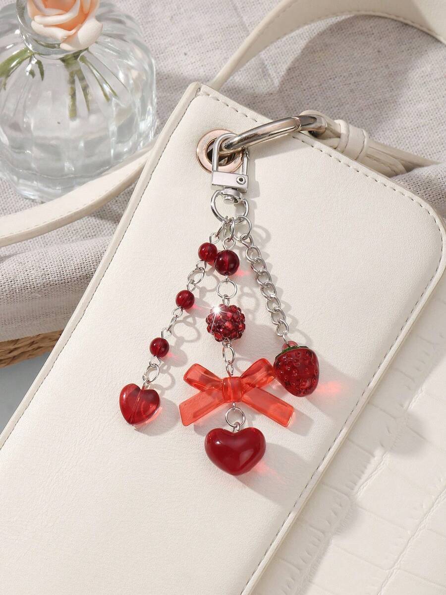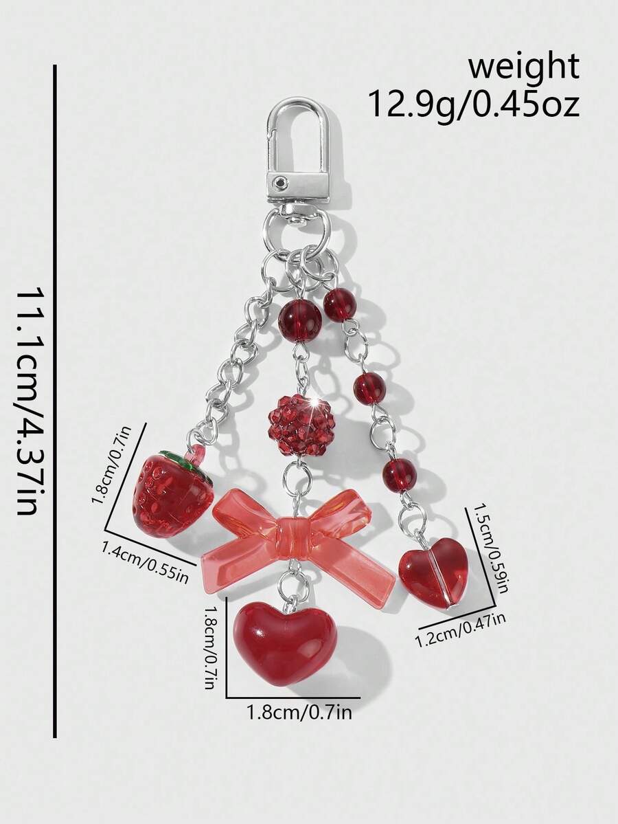 Kawaii 1 Stück Y2K Chic Cut Out Kette Rote Faux Kristall Weiche Ton Strass Kugel Harz Erdbeere Schleife Herz DIY Schlüsselanhänger Taschenbaumler, geeignet für Frauen/Mädchen Alltagstragen, Urlaubsgeschenk