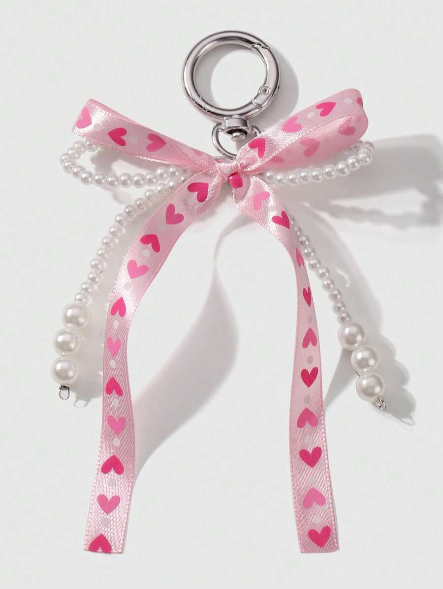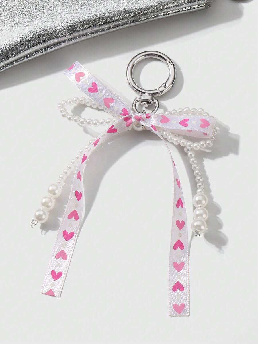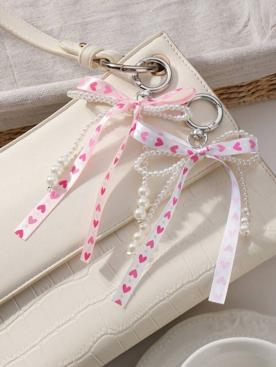 Kawaii 2 Stücke Süße & Zierliche Mädchen Mode Handgefertigte Perlen Weiß, Rosa Herz, Schleife Schlüsselanhänger & Taschenanhänger Set, geeignet für Paar, beste Freundinnen, Schwestern, Alltag, Geschenk zum Feiertag
