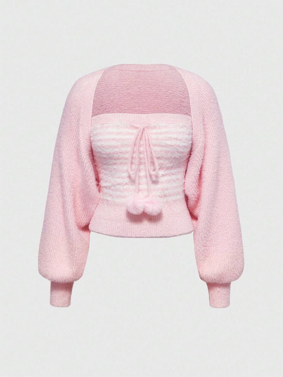 Kawaii 2 Stücke/Set Herbst/Winter vielseitiger weißer ästhetischer süßer Mädchen Tube-Top & Laternenhüllen Pullover
