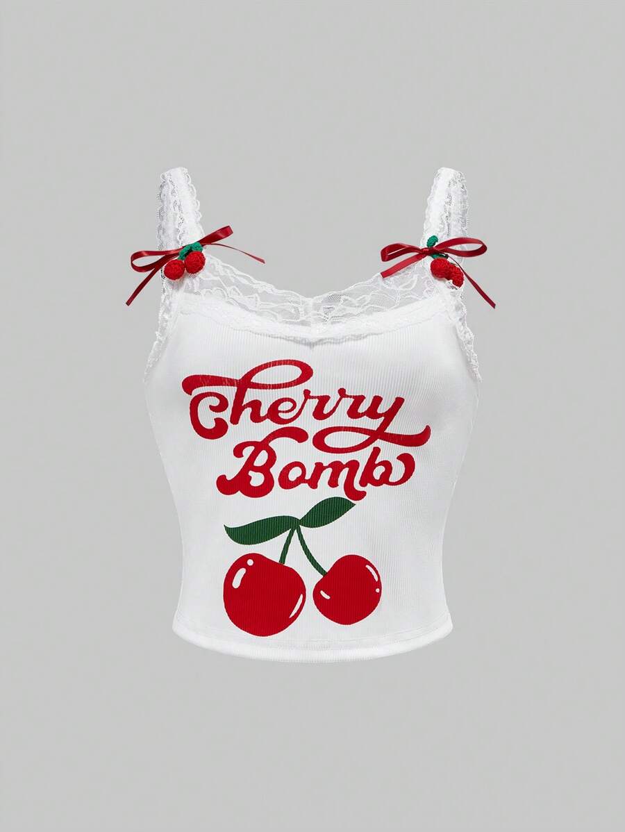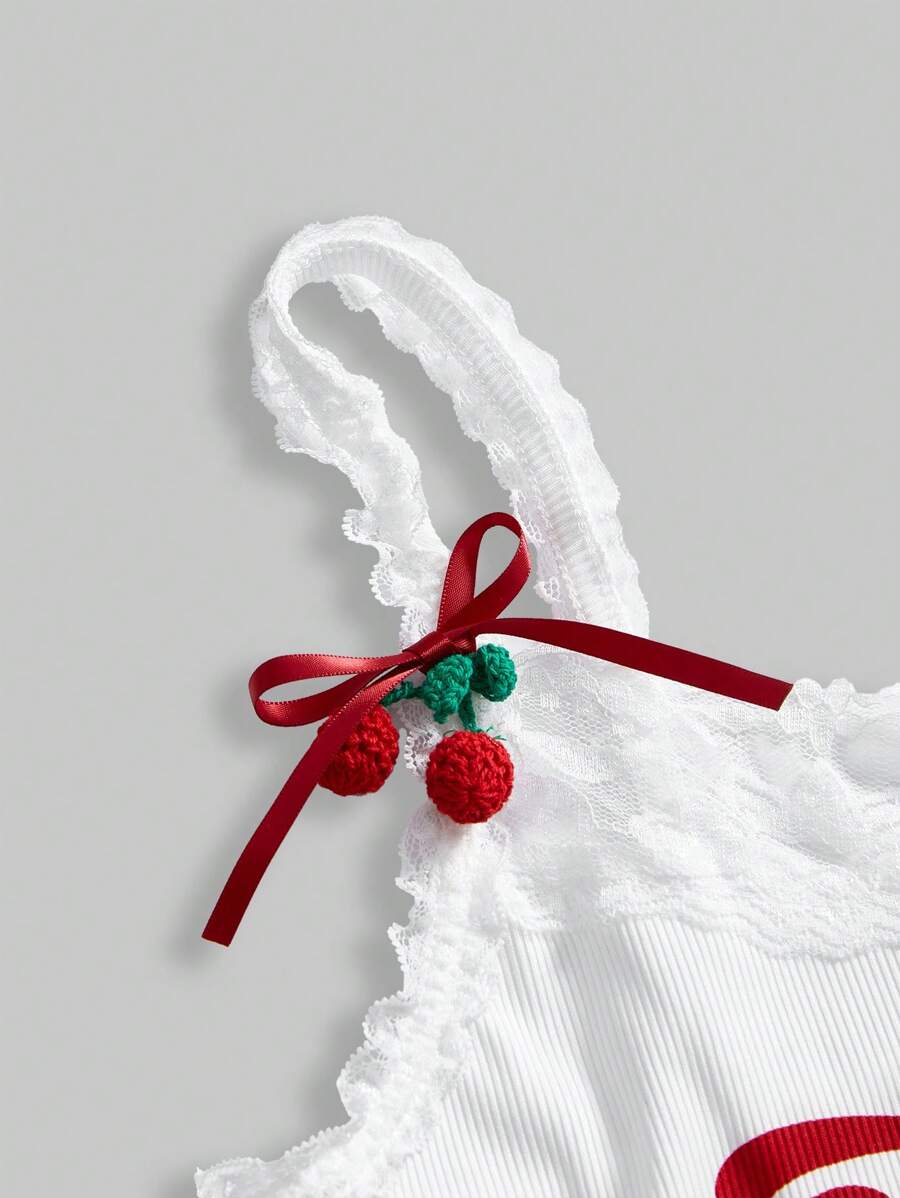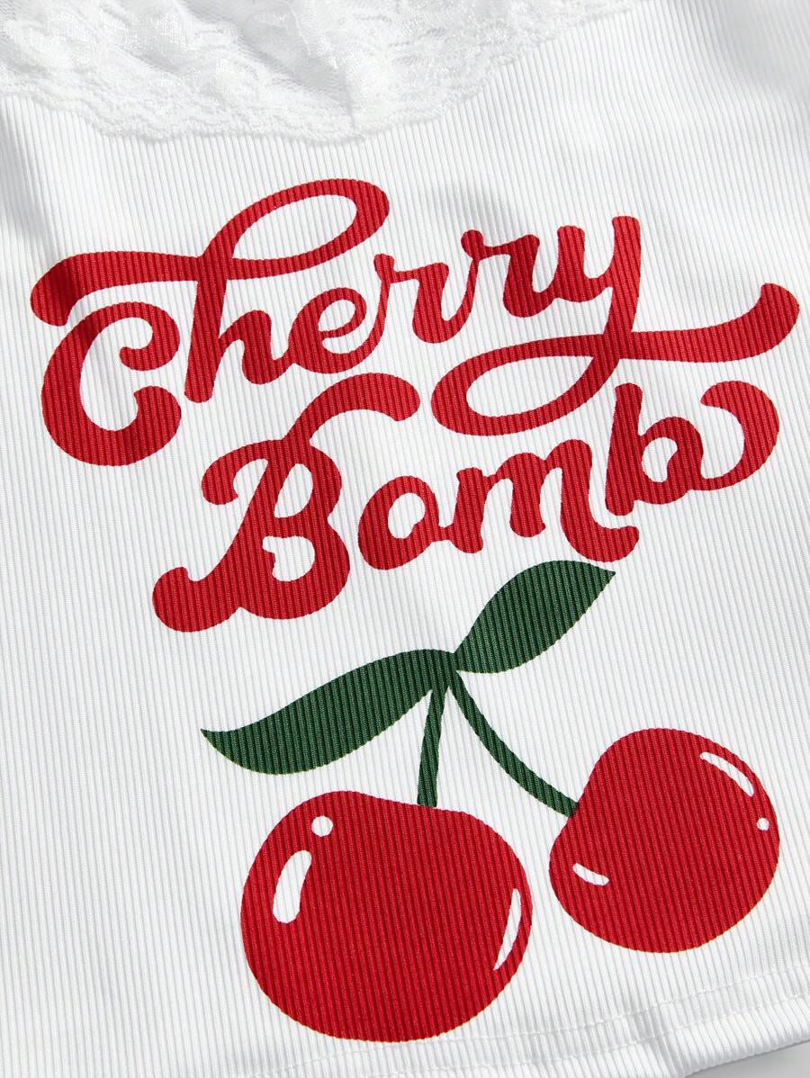 Kawaii 2 Stücke/Set Mädchen Casual Kirsche Drucken Spitze Nähte Leibchen Und Geraffte Super Shorts Set