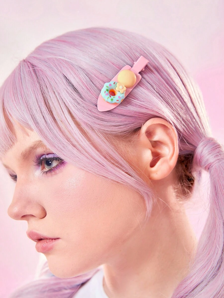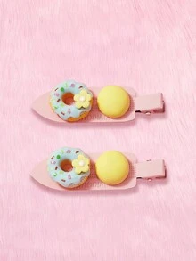 Kawaii 2 Stücke Haarspangen mit Donut Dekor für Damen