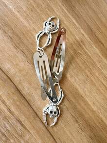Kawaii Frauen 2 Stücke Haarklammer Schädel Dekor