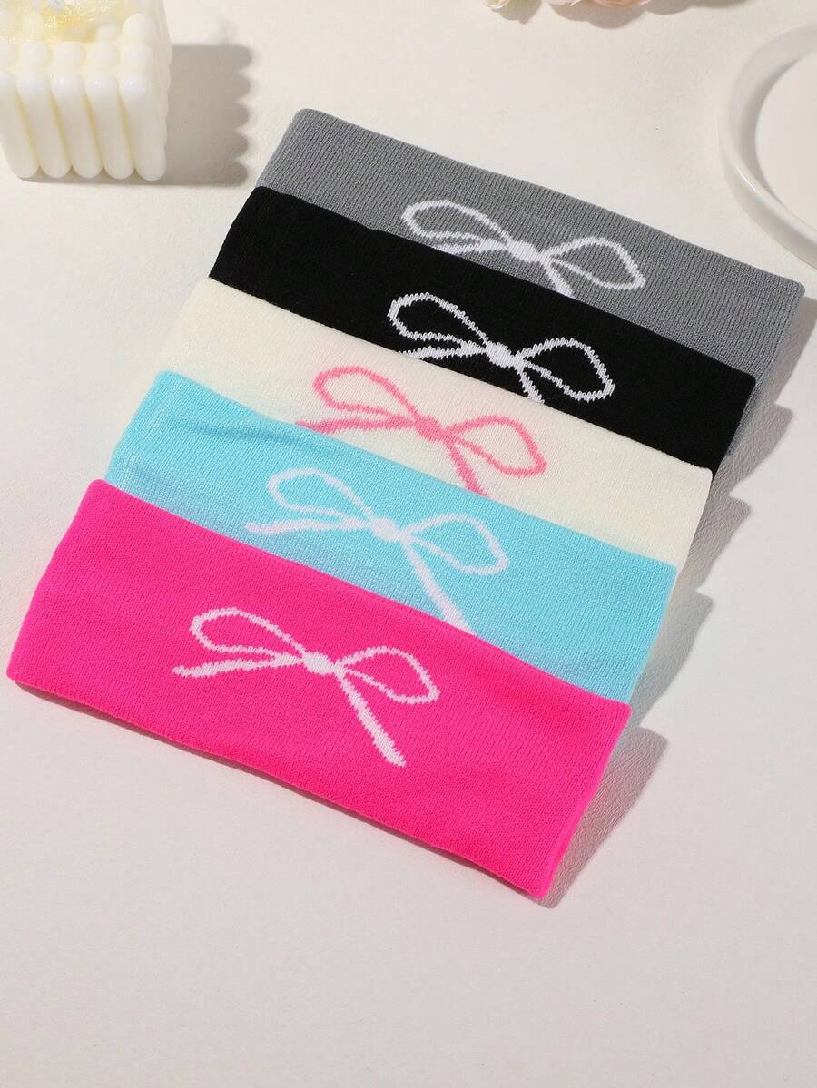 Kawaii 5 Stücke Streetwear-Stil Schleifen-bedruckte gestrickte Stirnbänder, geeignet für Frauen zum Einsatz beim Fitness, Streetdance, Musikfestival Dekoration
