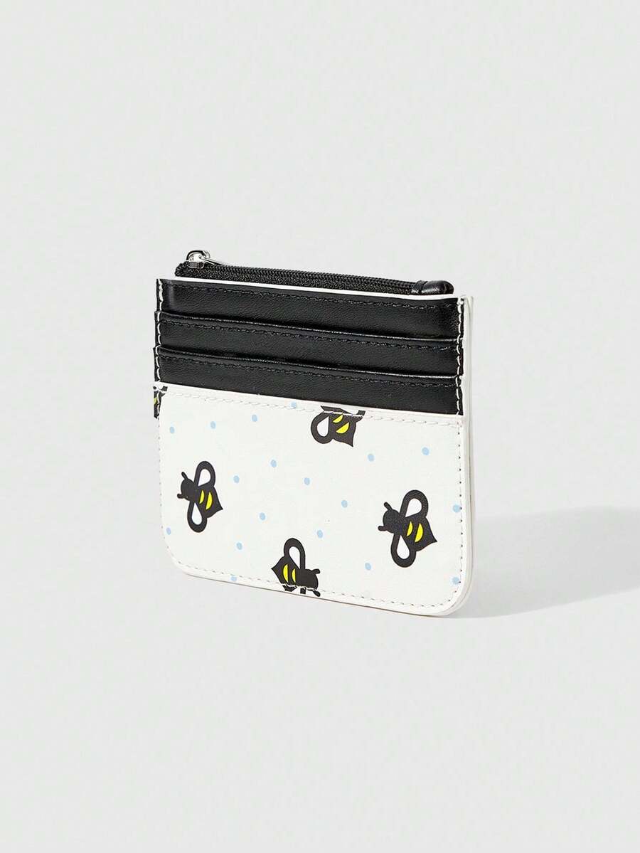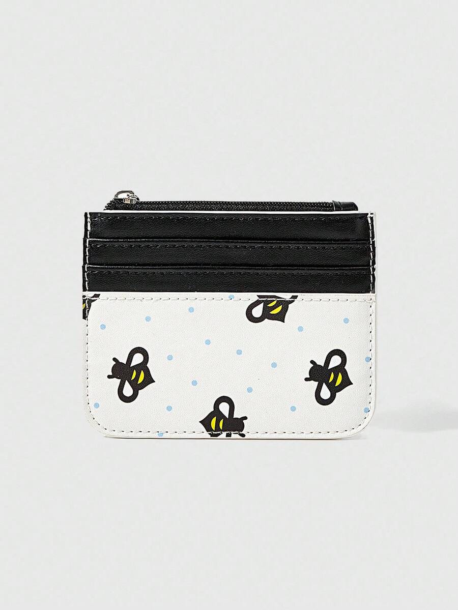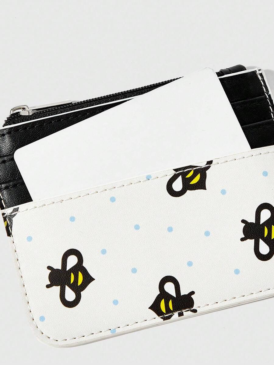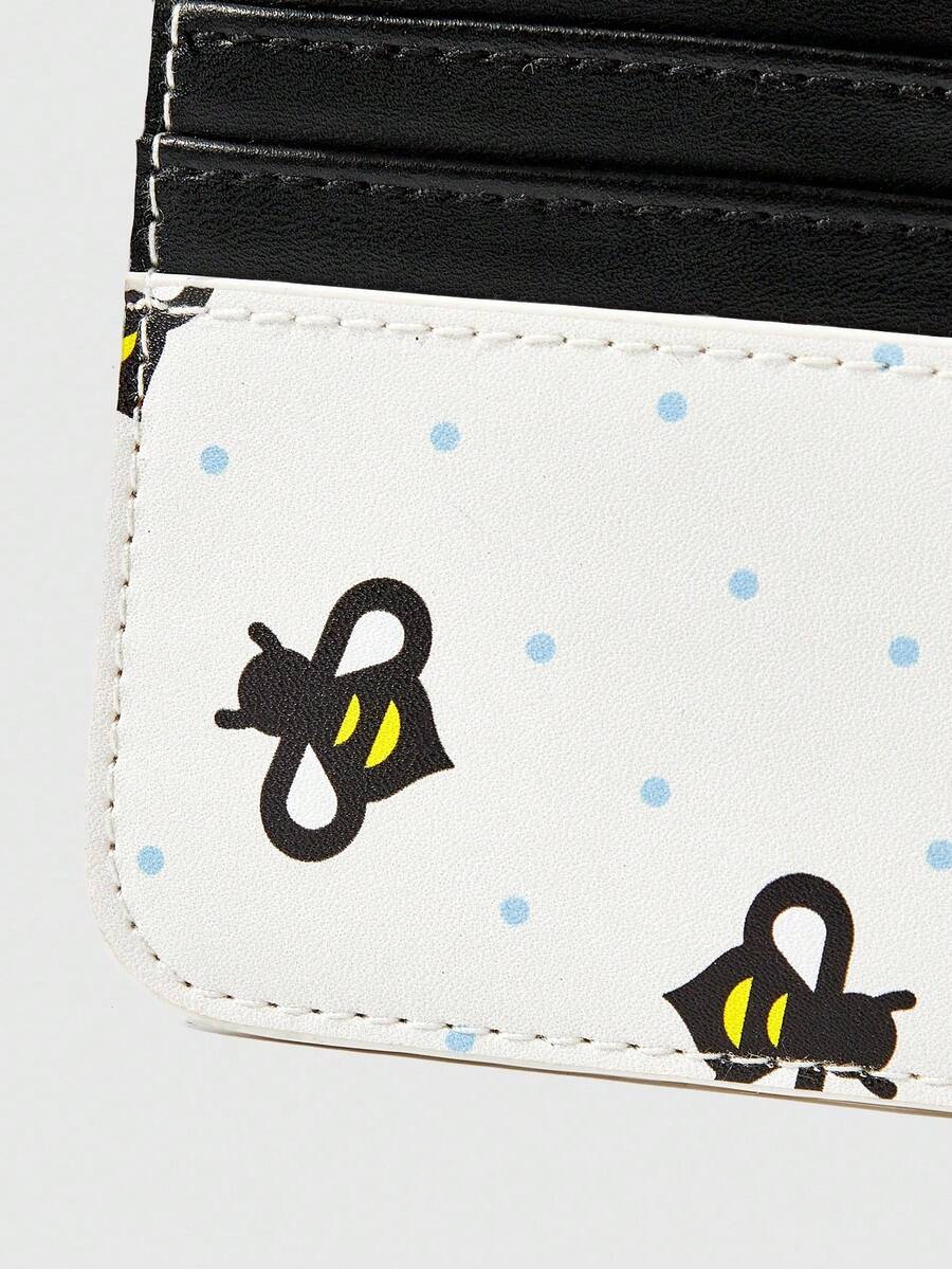 Kawaii Kartenhalter & Münzbeutel mit durchgehendem Bienen- und Punktemuster