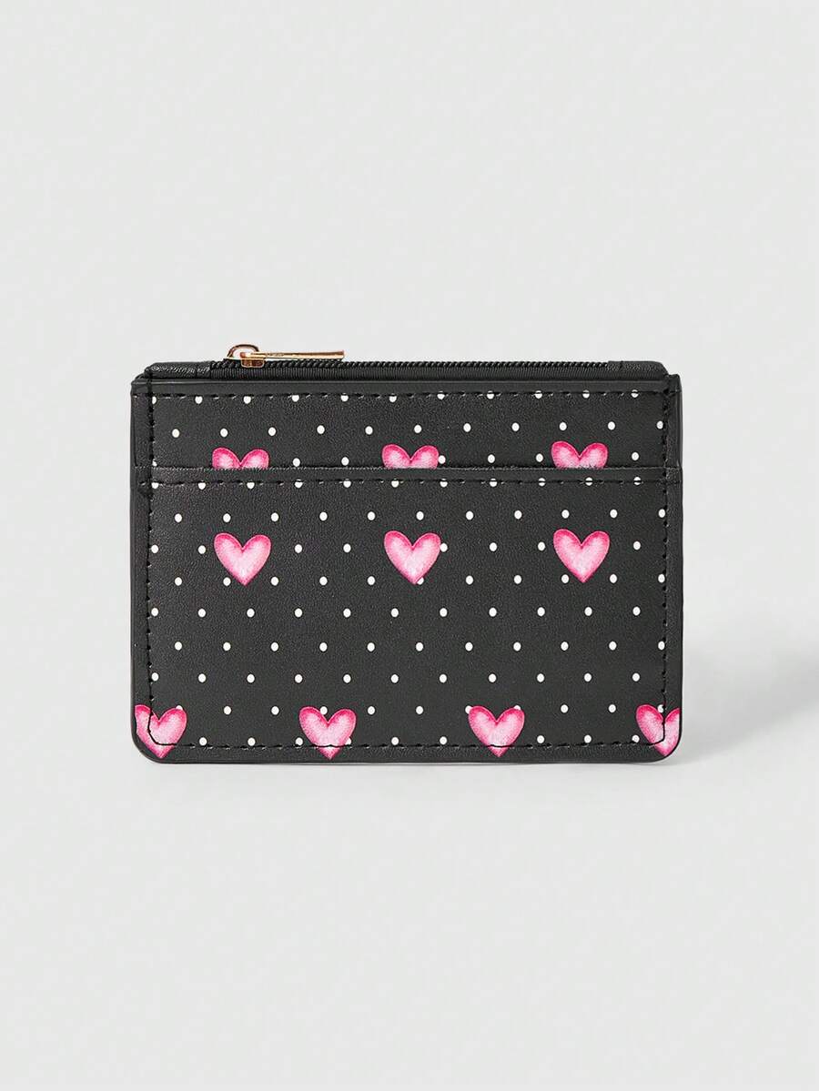 Kawaii Schwarze Polka Punkt Rosa Herz Kartentasche