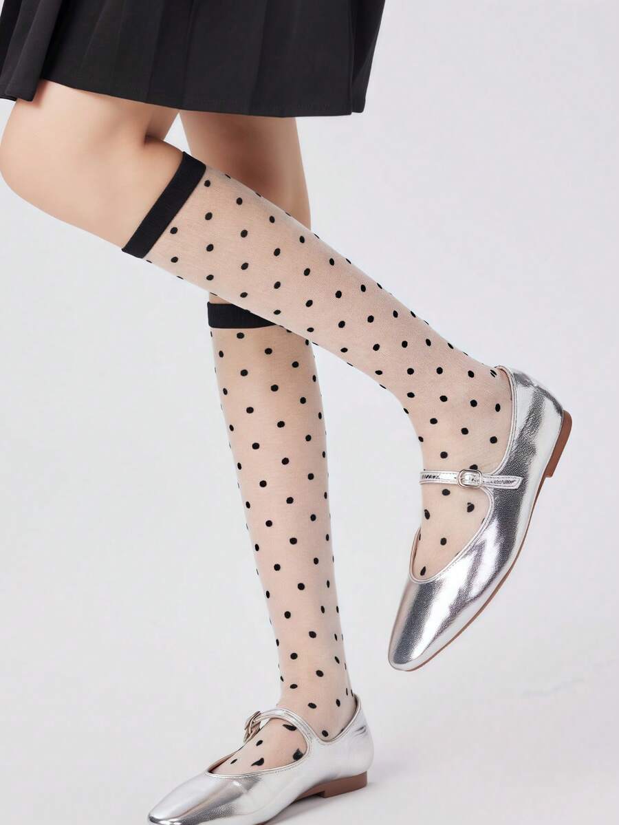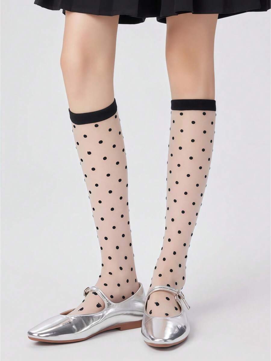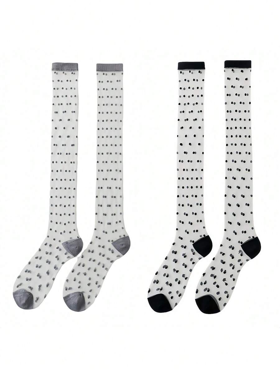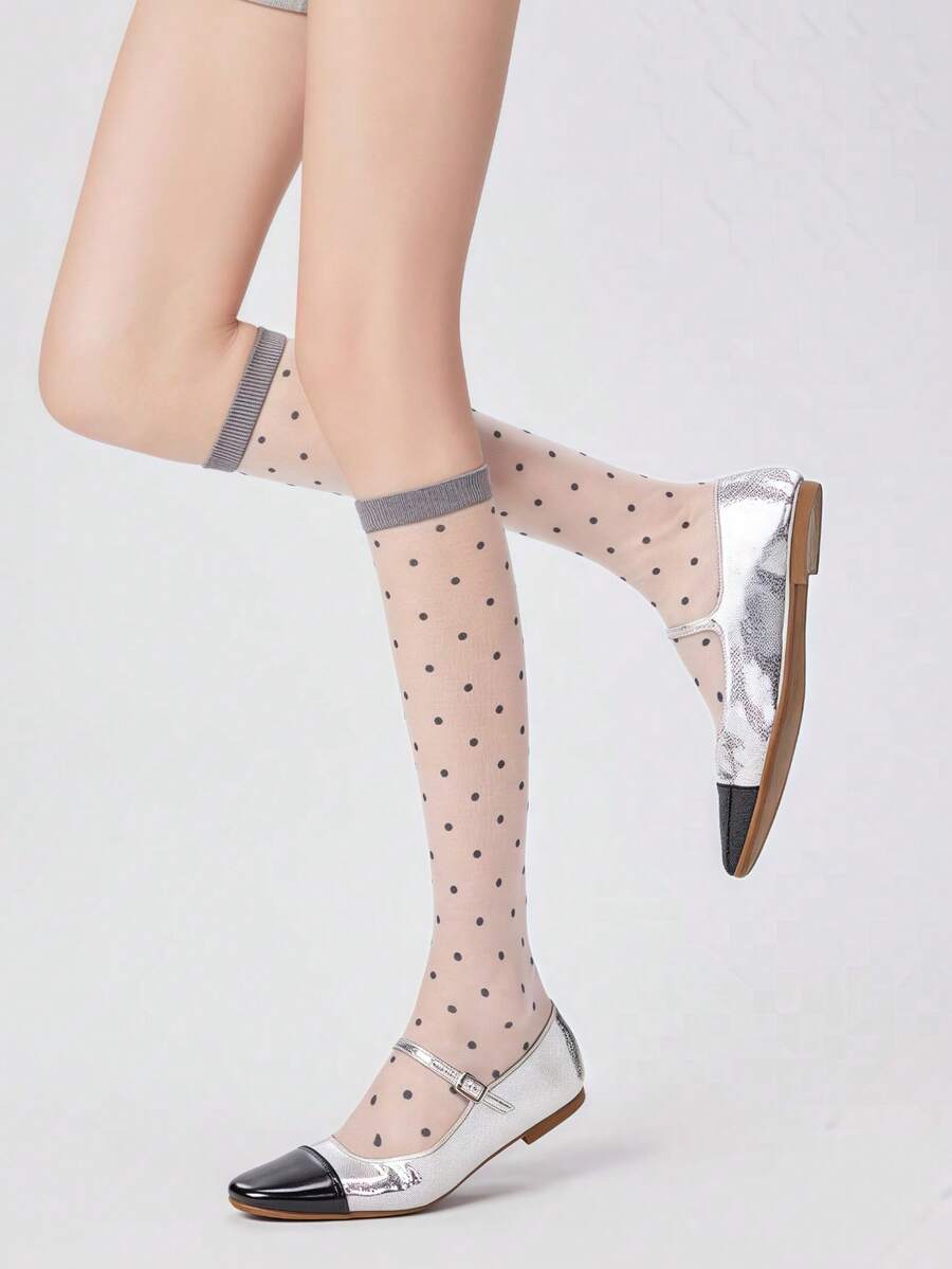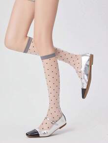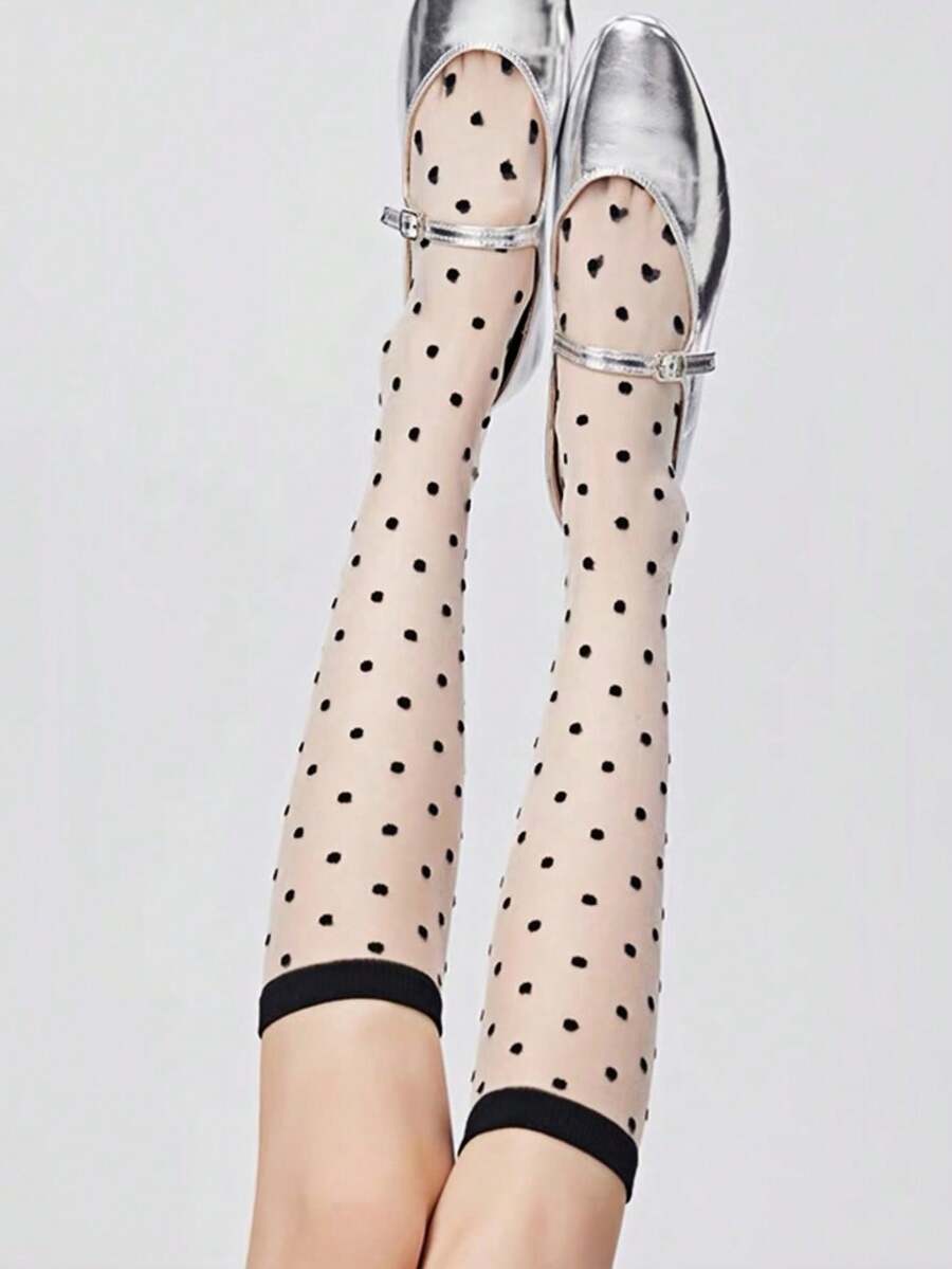 Kawaii Atmungsaktive Mesh asymmetrische Polka Punkt Knöchel-Socken, vielseitig & modisch Lässig Knöchel-Socken, Frühling/Sommer