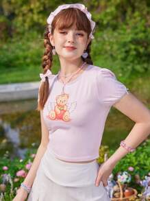 Kawaii Durchsichtige Spitze Cartoons Lässig Damen T-Shirts