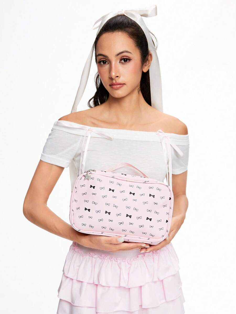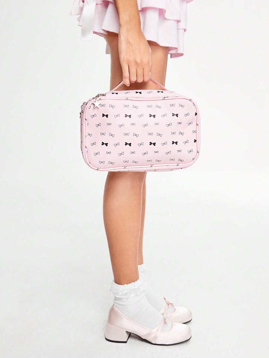 Kawaii Zeichentrick Mädchen Herz-förmiges Schleifen-Muster Tasche mit großer Kapazität für Reisen oder zur Aufbewahrung von Kosmetik [497276]
