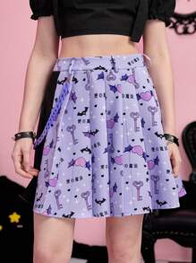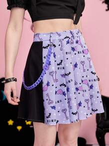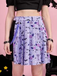 Kawaii Faltenrock mit Cartoon Grafik, & Kette