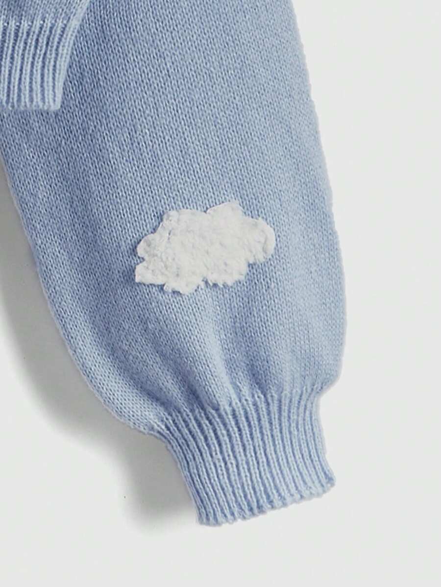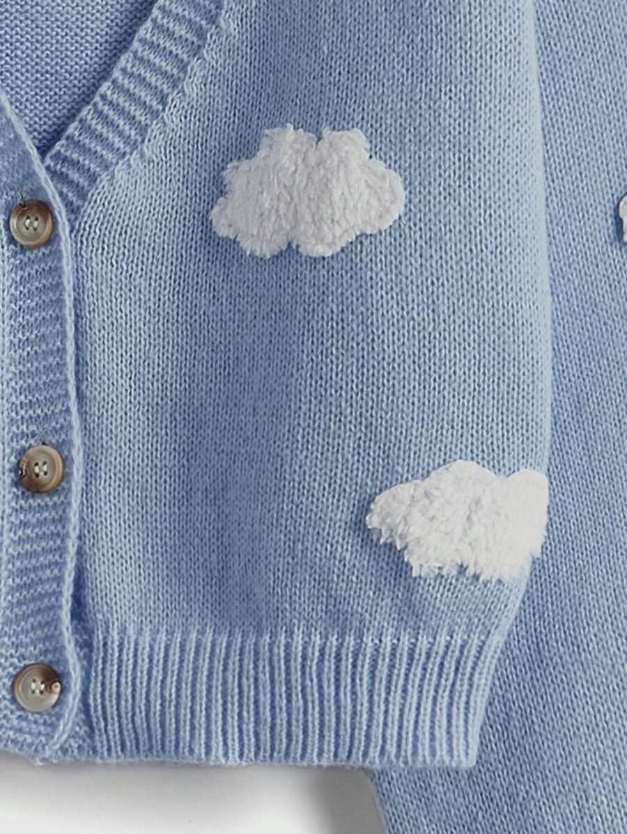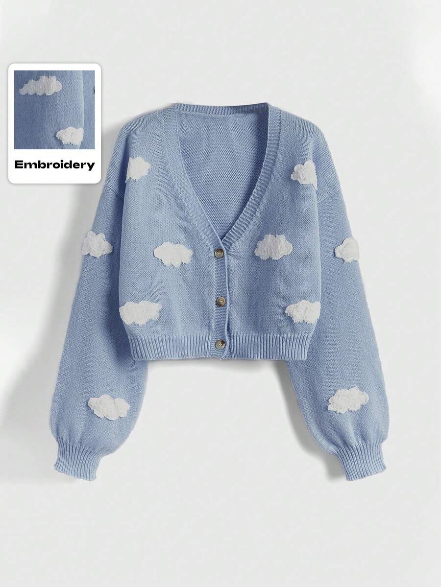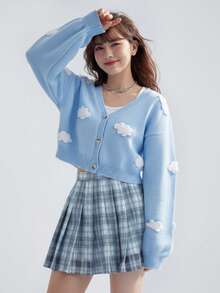 Kawaii Wolke gedruckter V-Ausschnitt Strickjacke, Schule, Langarm Oberteile