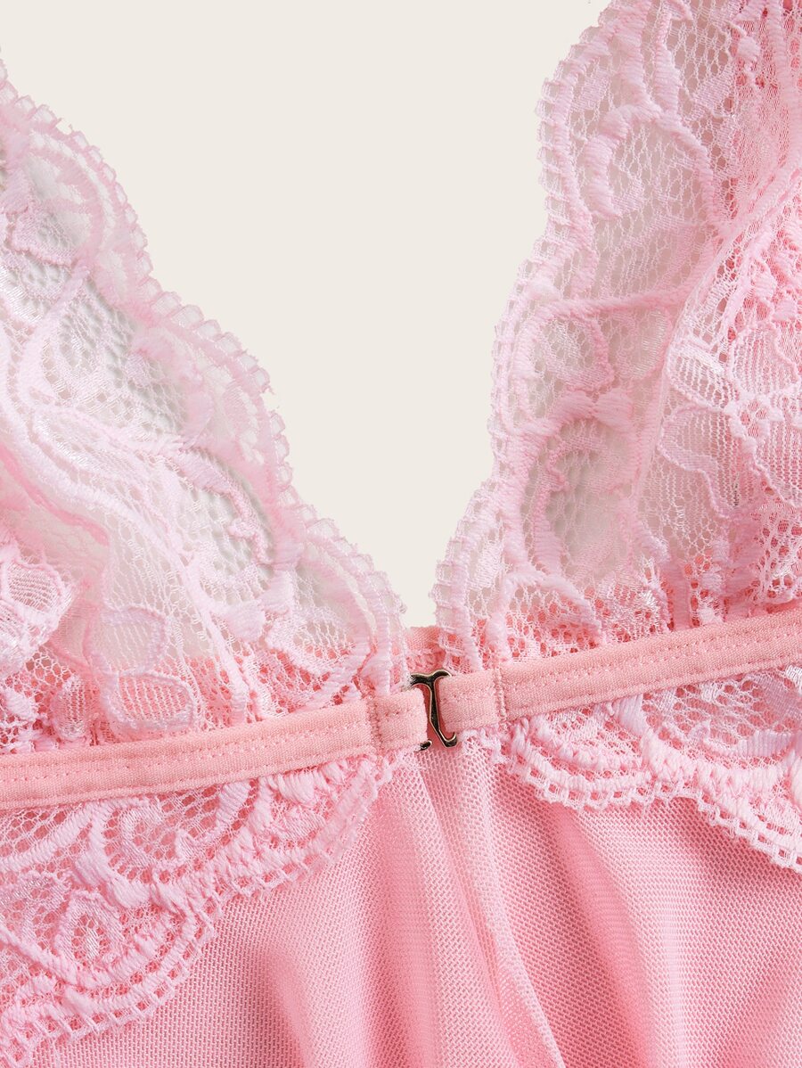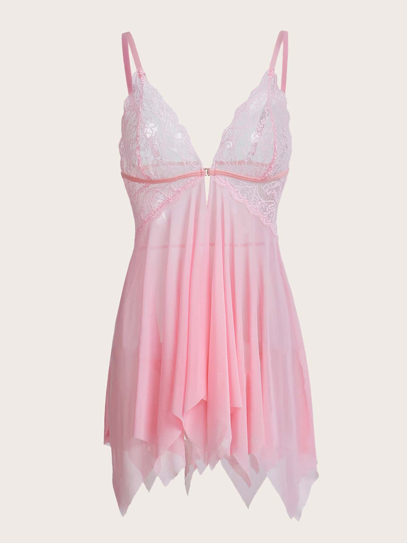 Kawaii Kontrastfarbenes Spitzen-Babydoll Negligé Kleid & String