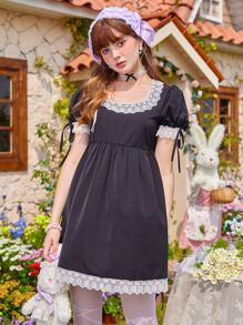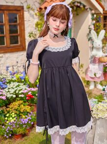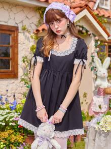 Kawaii Kontrastierendes Spitzenkleid mit Puffärmeln