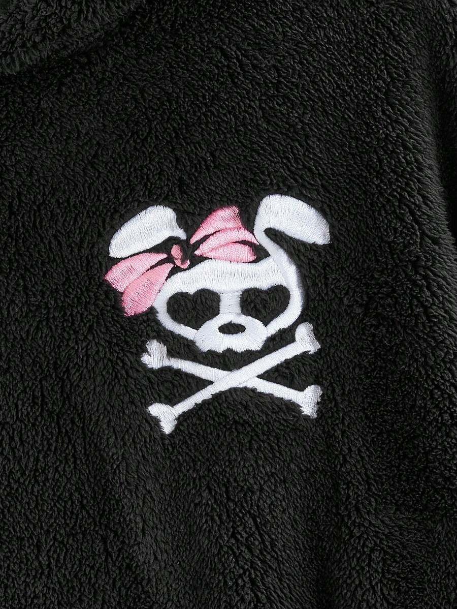 Kawaii Lässiger Damenpullover mit Kapuze in Hasenohren-Form und Totenkopf-Stickerei