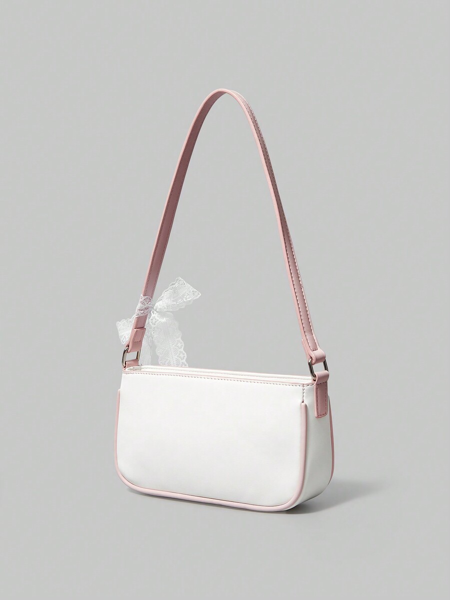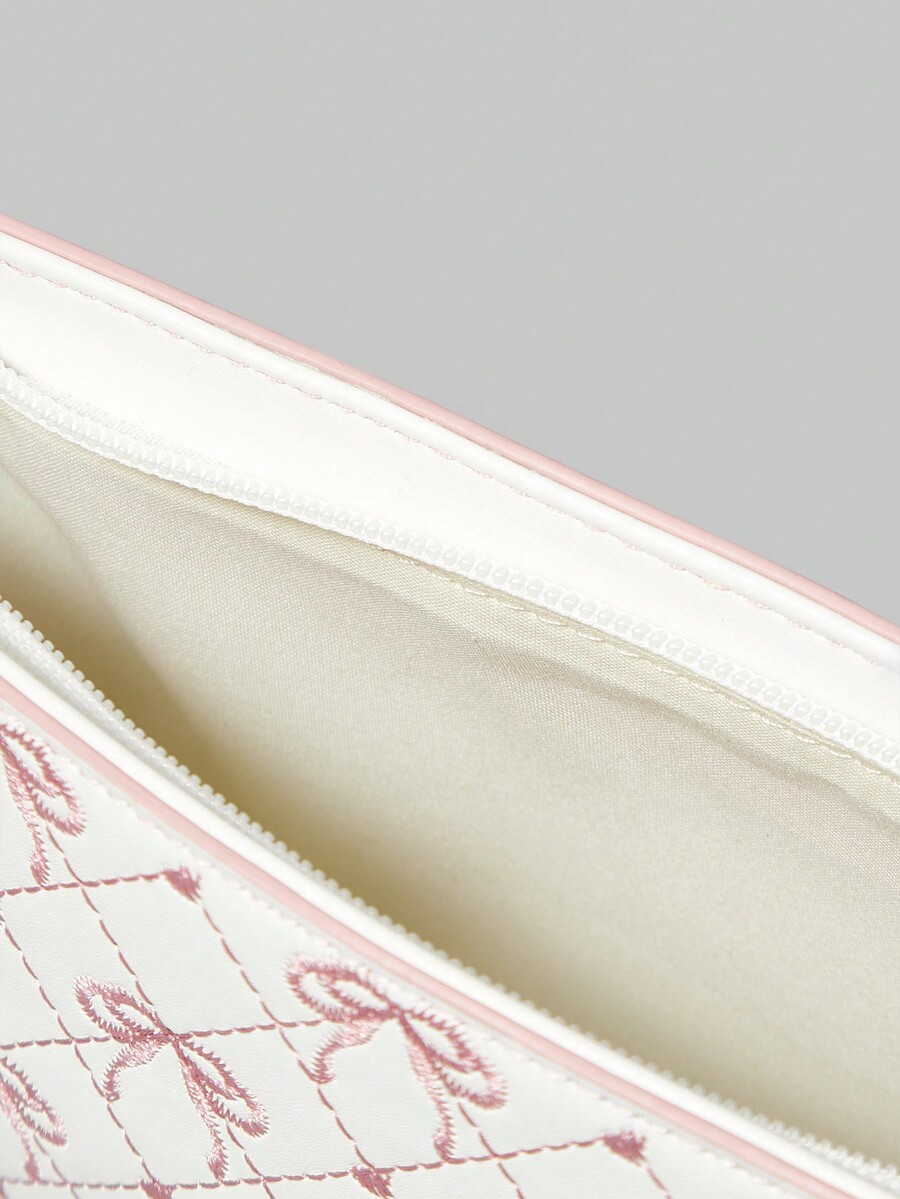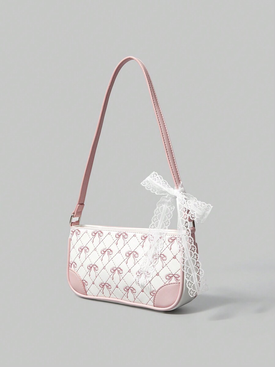 Kawaii Süße rosa Schleife-Umhängetasche mit Stickerei für Frauen