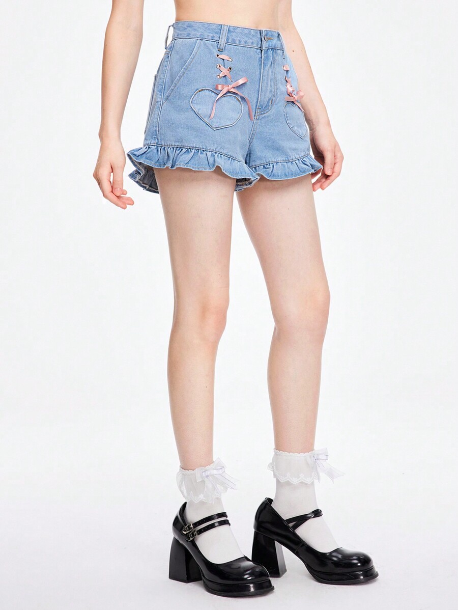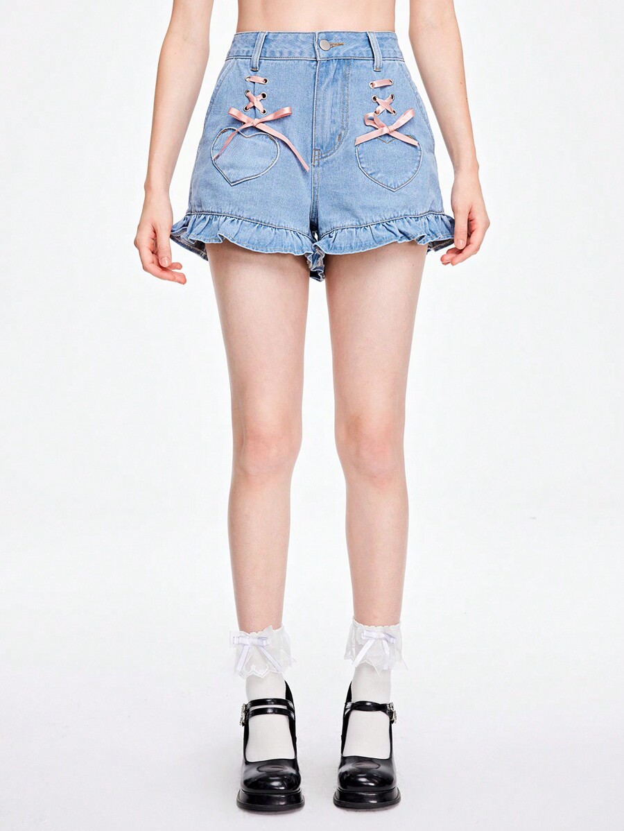 Kawaii Niedliche, herzförmige, gewebte Gürtel, Damen Denim Shorts