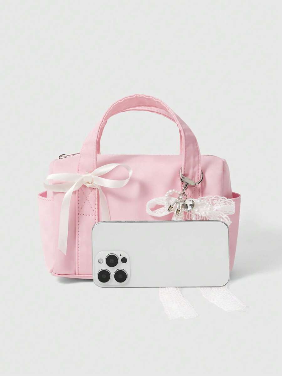 Süße rosa Schleife Dekoration, Kawaii Street Style Damen Tragetasche für Valentinstag